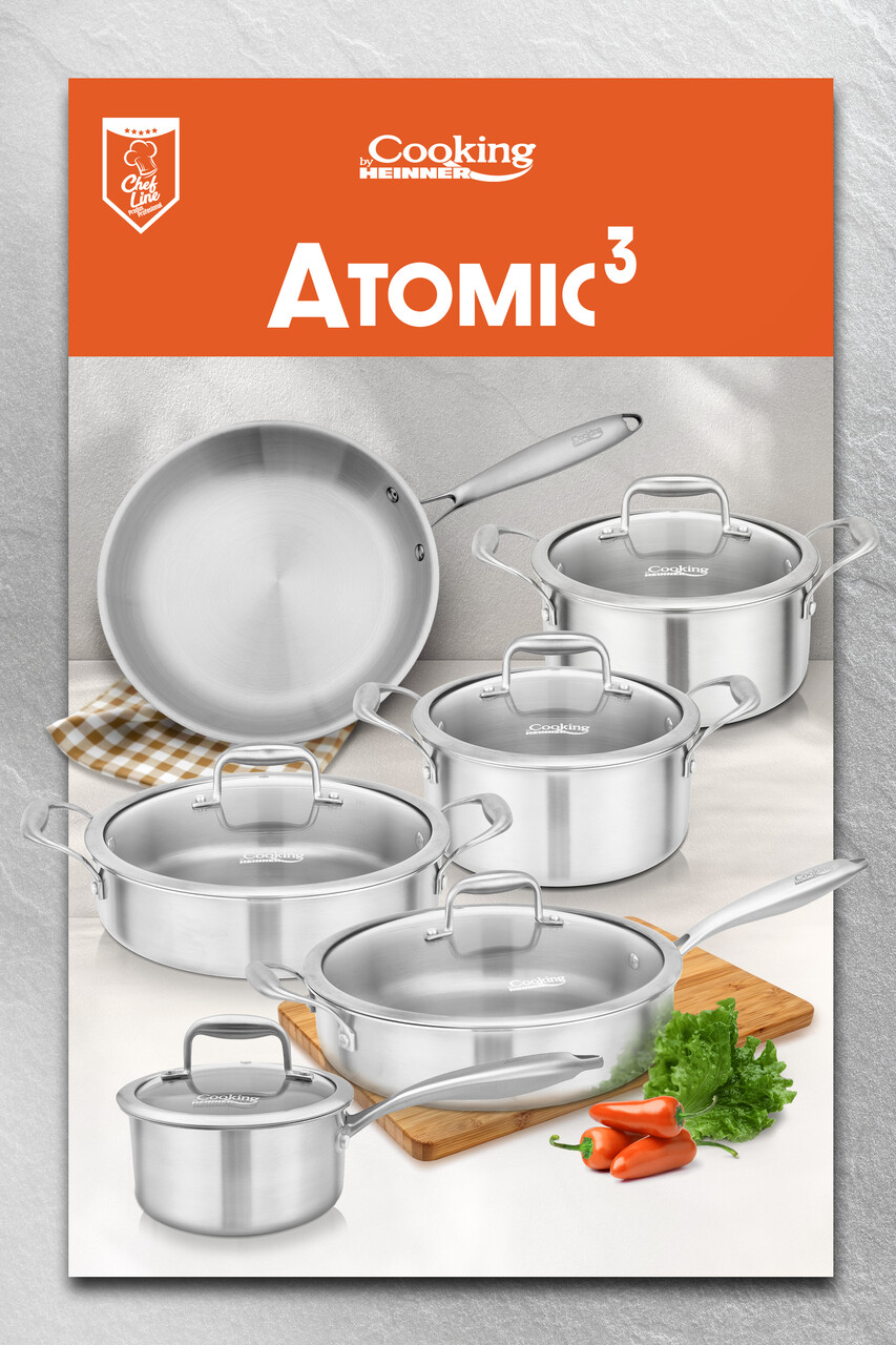 Atomic3 inseamna echilibru intre soliditate si manevrabilitate. Vasele sunt placute la utilizare, bine proportionate si finisate satinat, oferind un aspect modern si profesional. Se integreaza perfect intr-o bucatarie actuala si fac fata cu brio utilizarii zilnice. Cand le tii in mana, simti diferenta.