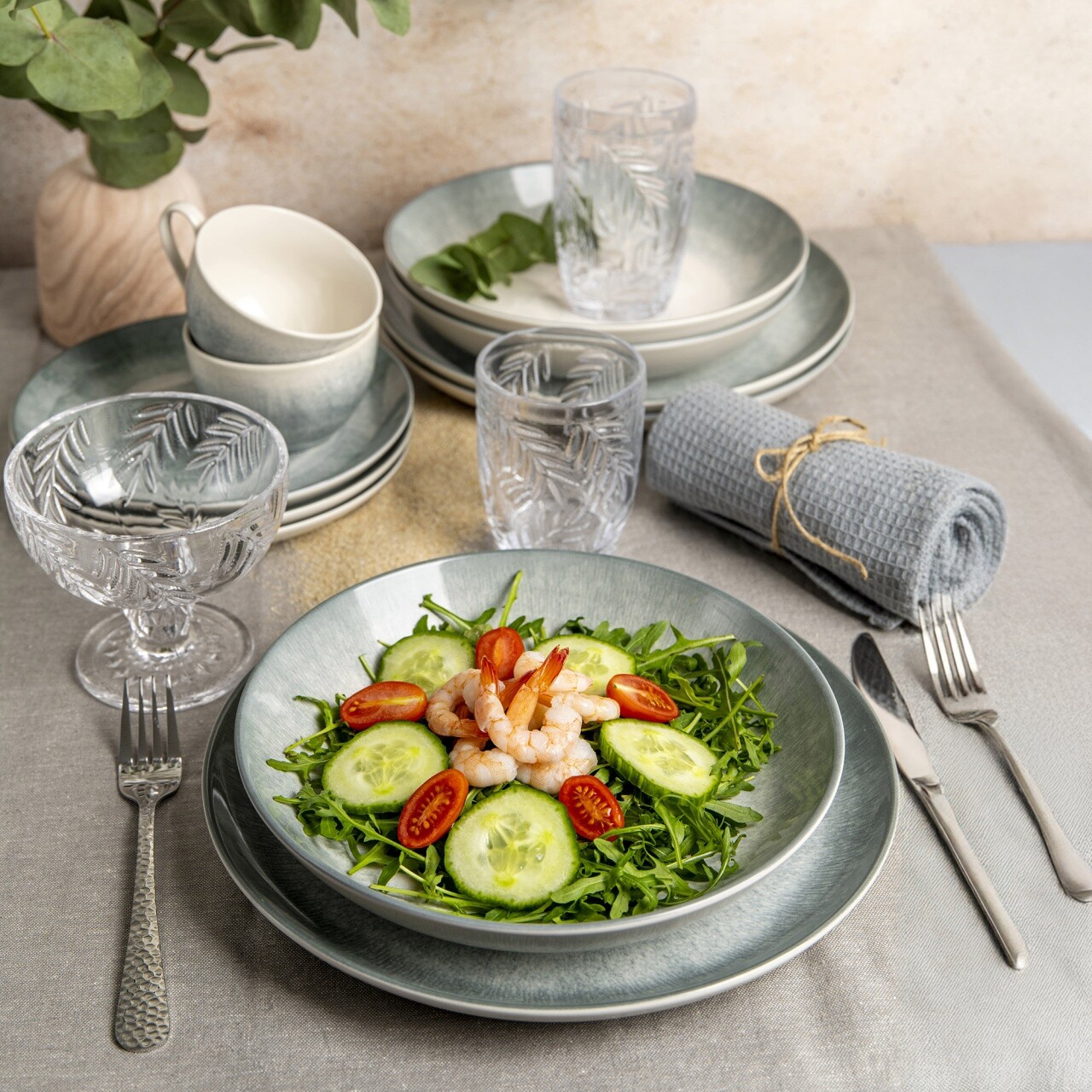 Serviciu de masa 18 piese, Aqua, Ambition, ceramica, albastru