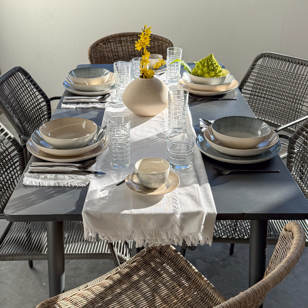 Colectia Aqua se caracterizeaza printr-o nuanta delicata care se incadreaza perfect in tendinta naturii. Incanta prin subtilitatea si culoarea sa calda si arata frumos pe masa.