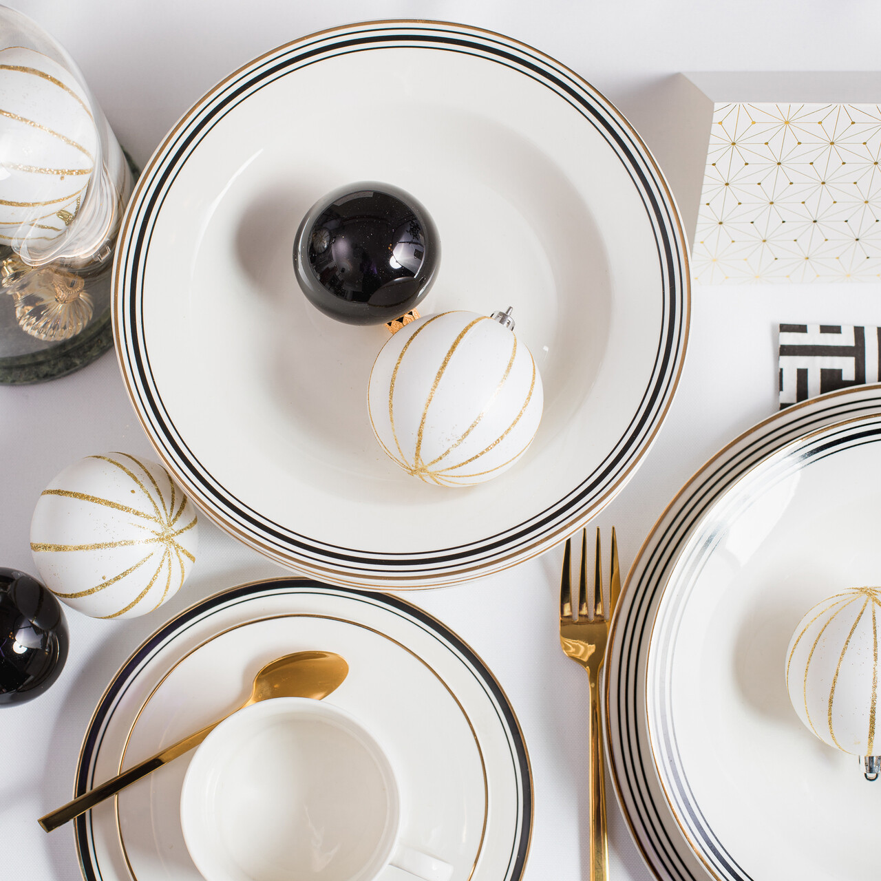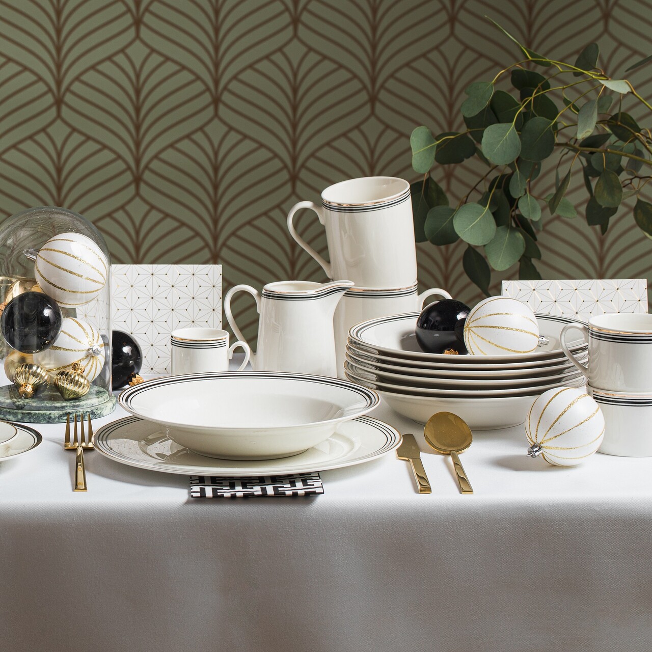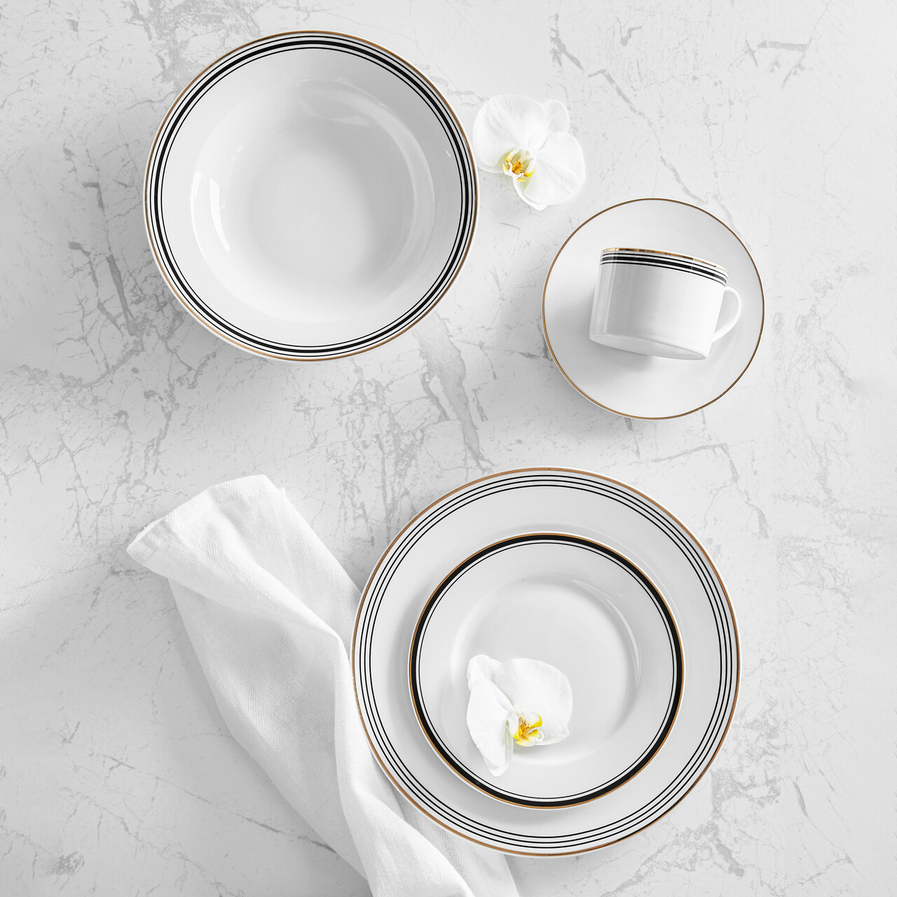 Cu un accent pe iubitorii de design modern, vesela noastra de portelan combina minimalismul cu eleganta rafinata. Dungile negre si aurii contrasteaza perfect cu portelanul alb, conferind fiecarei piese un caracter unic. Varietatea in grosimea si configuratia dungilor face ca intregul set sa formeze un intreg armonios care va va incanta atat pe dumneavoastra, cat si pe invitatii dumneavoastra.