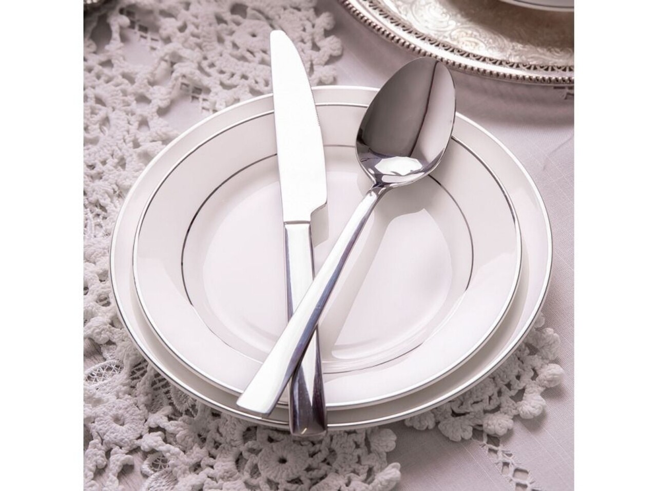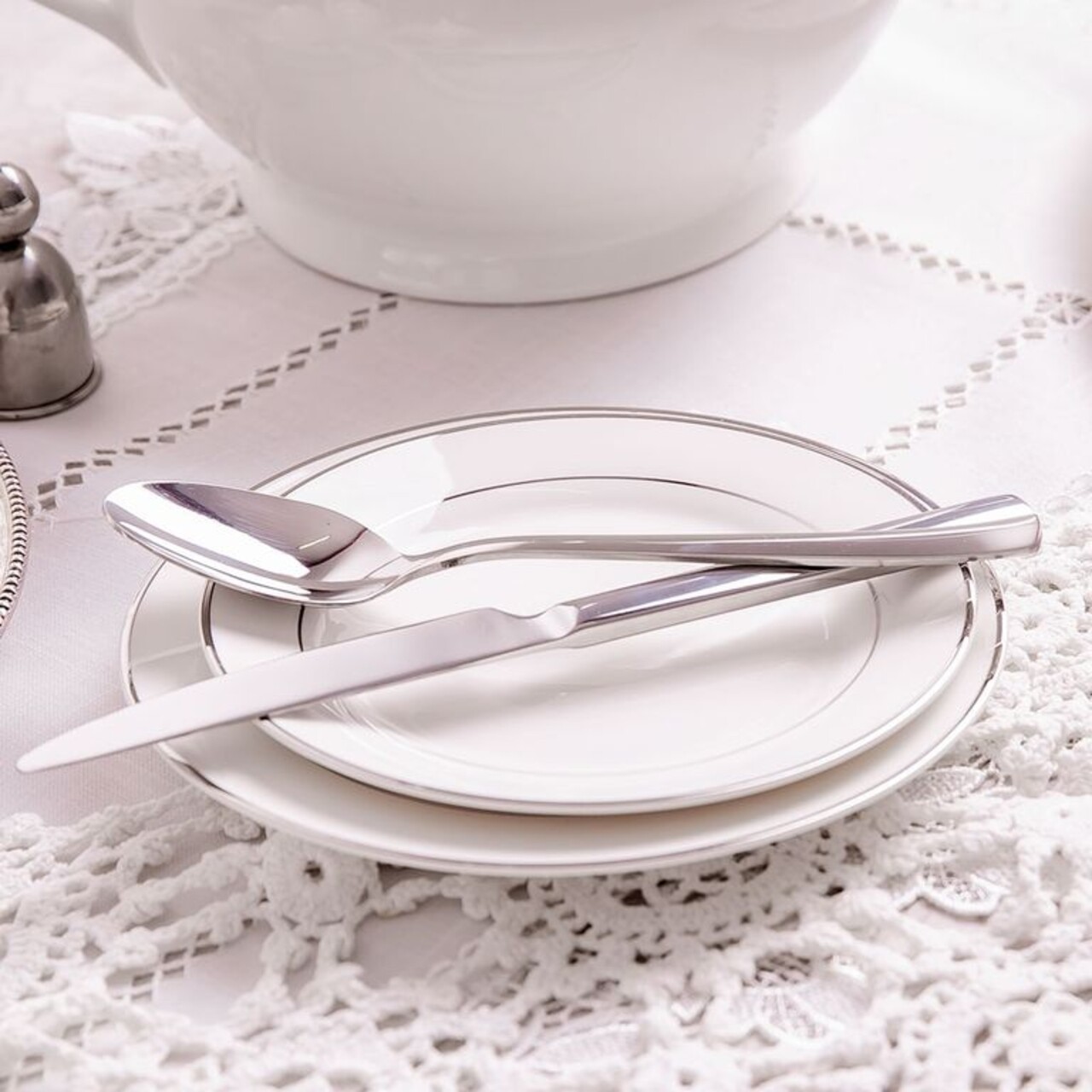 O linie de portelan exceptional de eleganta, decorata cu linii delicate de argint. Forma clasica si decoratia subtila o fac perfecta atat pentru interioarele traditionale, cat si pentru cele moderne. Portelanul New Bone China de inalta calitate, cu o nuanta alb-gri, este rezistent si arata foarte exclusivist.