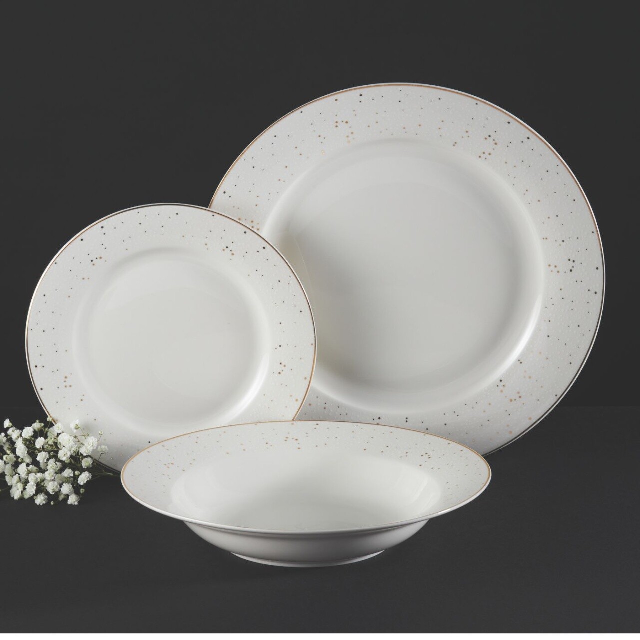 Serviciu de masa 18 piese, Aurelia, Ambition, portelan, alb/auriu