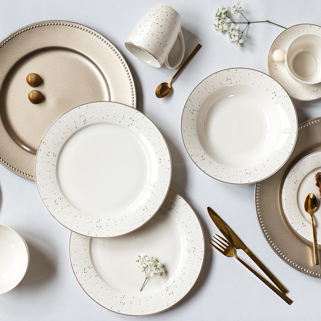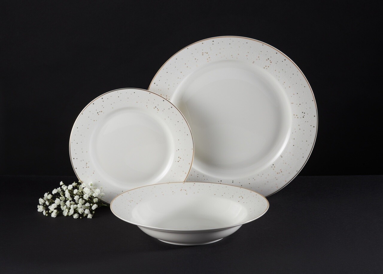 O colectie eleganta de portelan, cu un model delicat cu puncte aurii care imbina perfect luxul cu modernitatea este Aurelia de la Ambition. Perfecta pentru orice ocazie – de la mesele de zi cu zi pana la intalnirile formale. Calitatea inalta, designul subtil si versatilitatea fac din serviciul de masa Aurelia o idee perfecta de cadou. Adauga o nota de rafinament mesei tale!