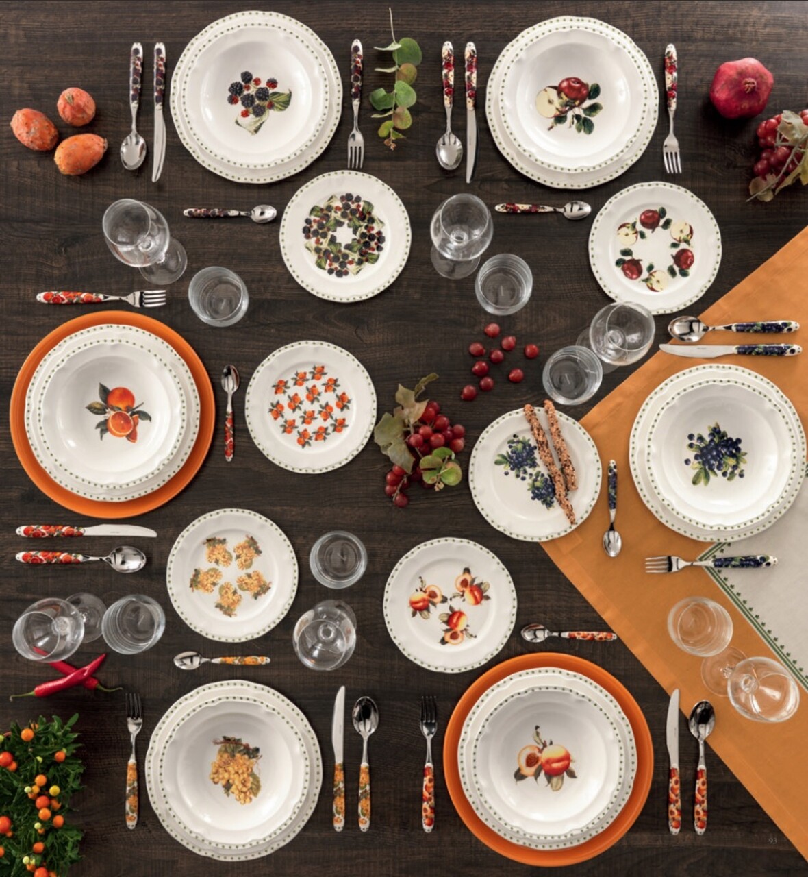 Boboci gingasi si fructe zemoase, aduse direct din frumusetea sezonului cald: serviciul de masa Le Primizie de la Brandani transforma masa intr-o adevarata celebrare a naturii. Cu setul de farfurii Le Primizie, fiecare detaliu reflecta armonie si eleganta, intr-o paleta de tonuri calde si decoratiuni vibrante.