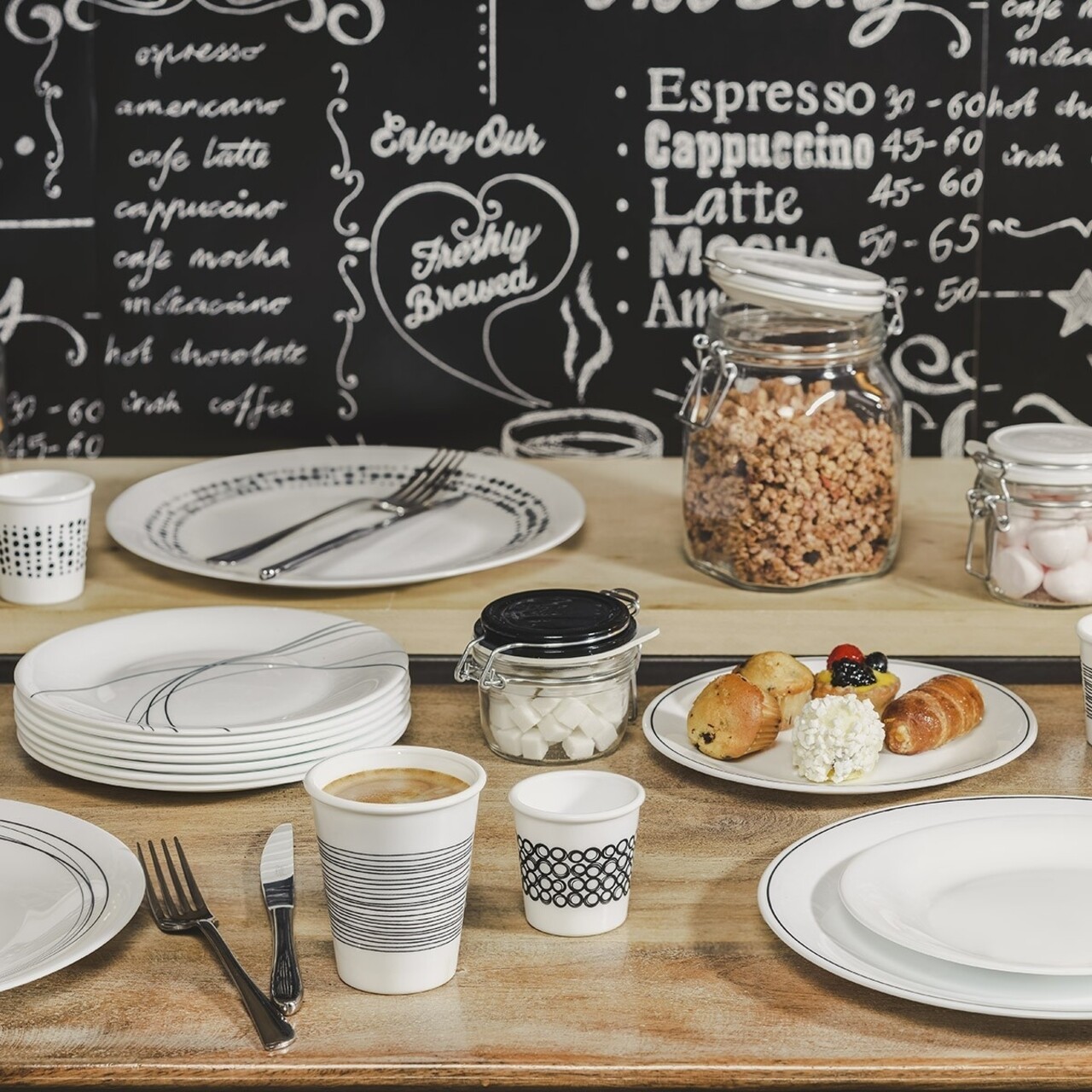 Serviciu de masa 18 piese, Chiaroscuro, Bormioli, opal, alb