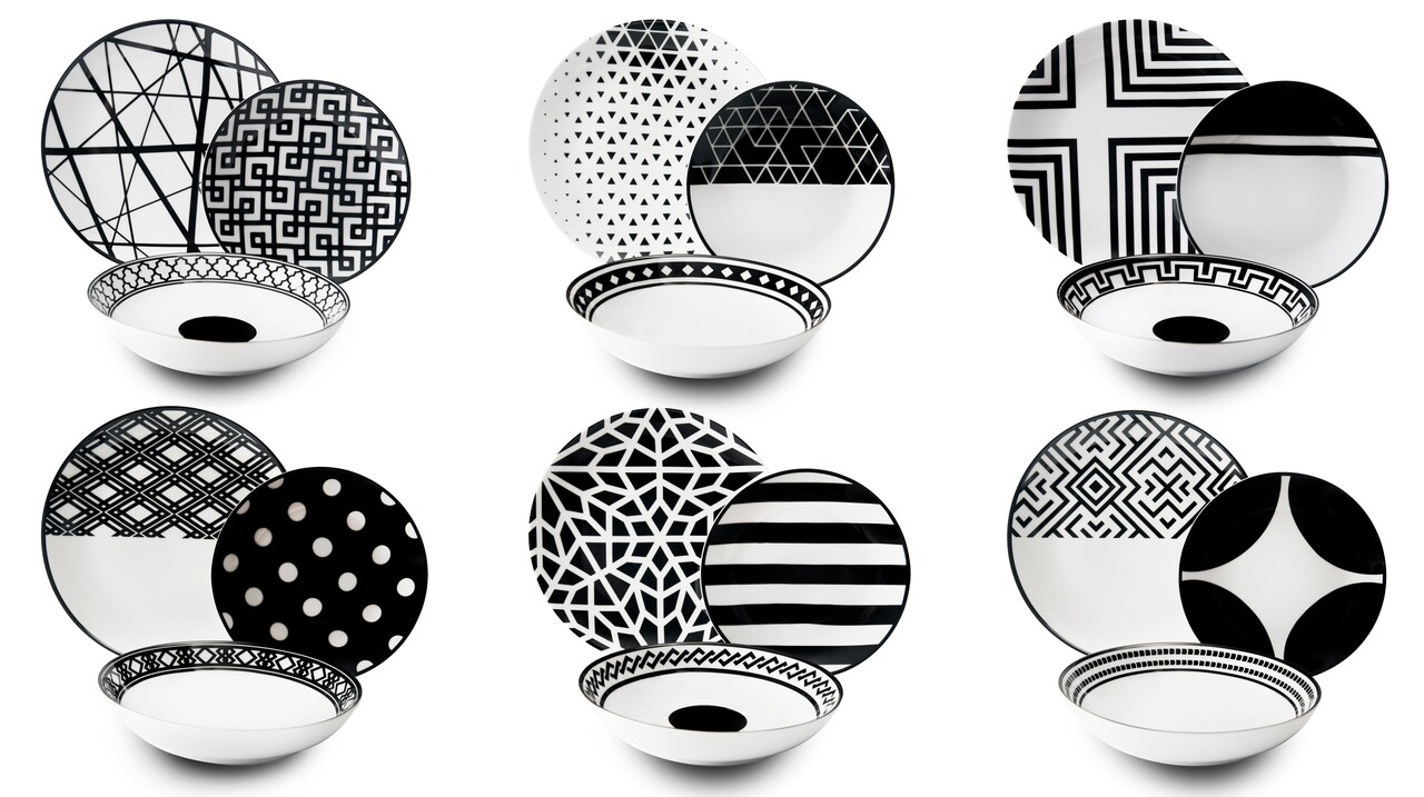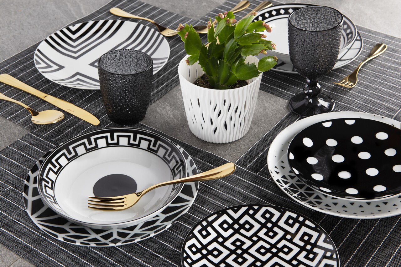 Serviciu de masa 18 piese Emily, Excelsa, portelan, negru
