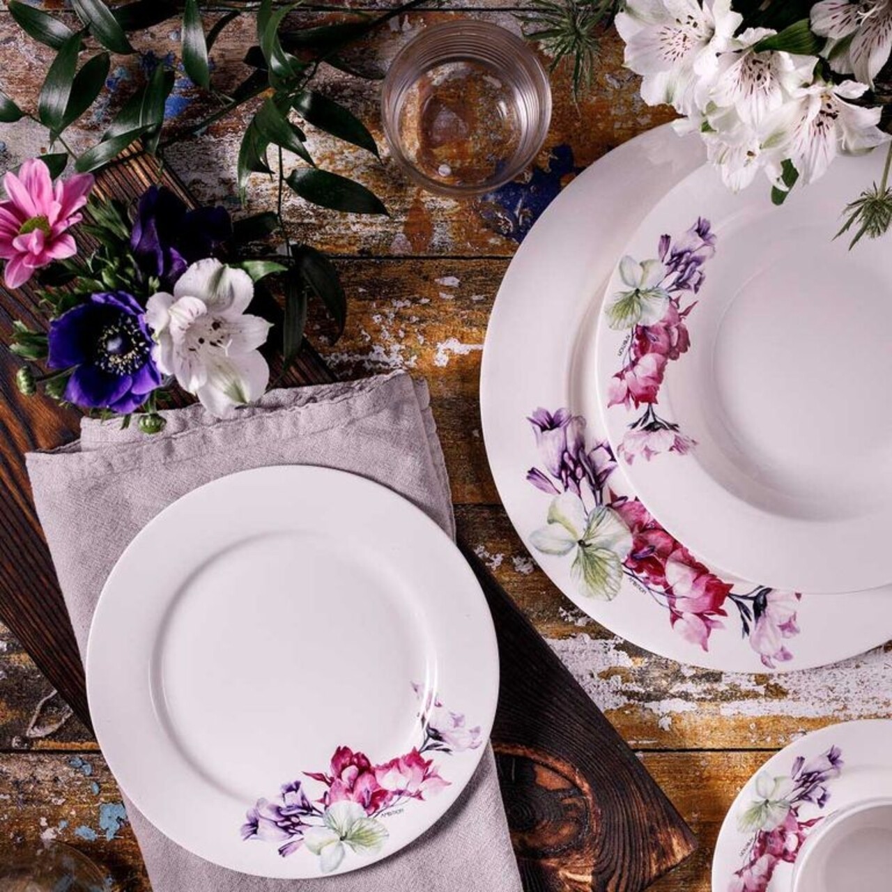 Colectia Garden este inspiratia de primavara a marcii Ambition. Culorile pastelate si modelele florale sunt o tendinta la moda in aranjamentele interioare, astfel vor fi ca un refresh in bucatariile dumneavoastra. Atmosfera de primavara va fi asigurata de decoratiunile veselei, fiind perfecte pentru cina in familie, sau relaxandu-va alaturi de cei dragi la o cafea. Decoratiunile florale elegante ale portelanului New Bone China gri mat, forma fara margini si tipul decoratiunilor sub lac fac acest serviciu de masa sa poata fi spalat la masina de spalat vase.