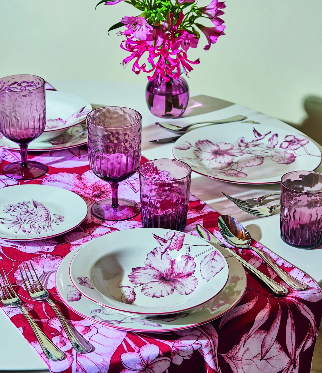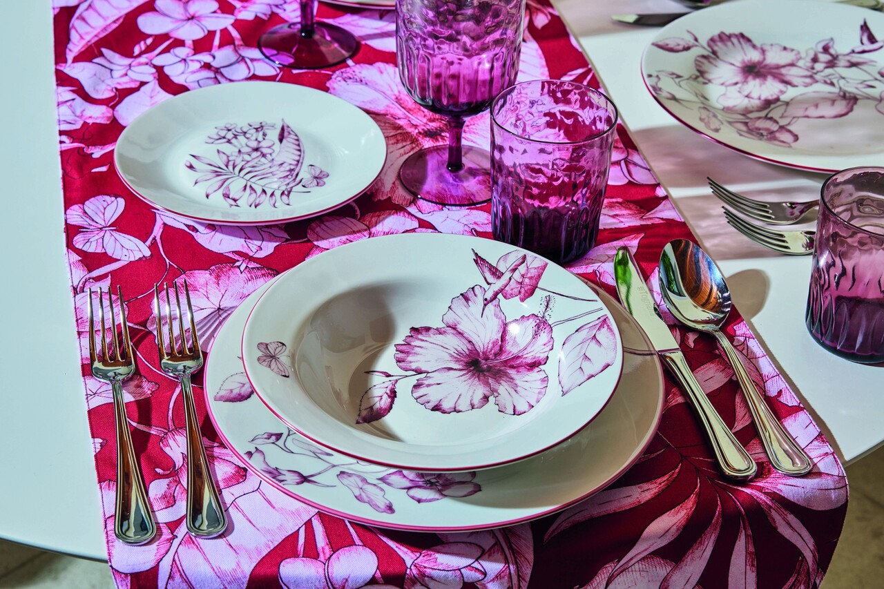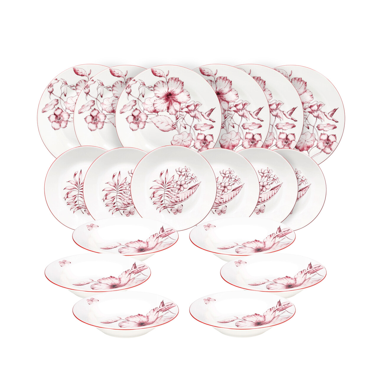 Serviciu de masa 18 piese Linea Atollo, Andrea Fontebasso, portelan, alb/roz