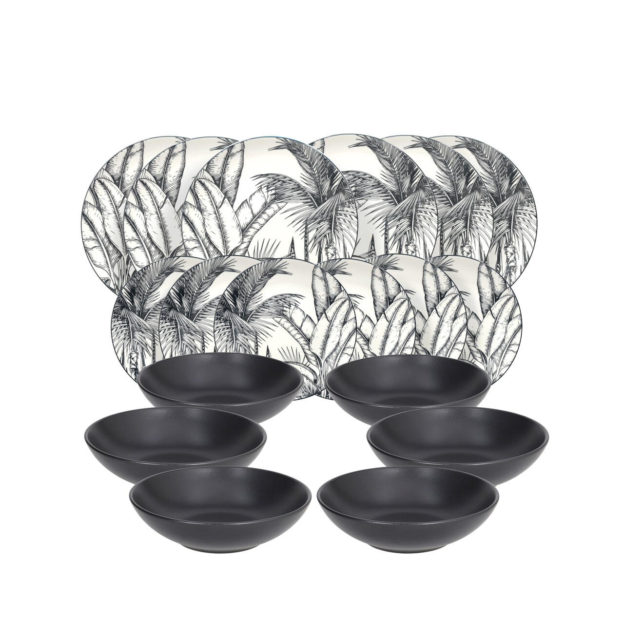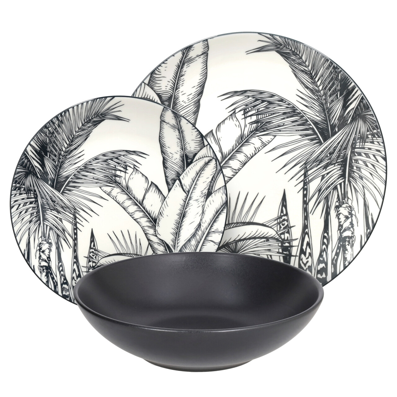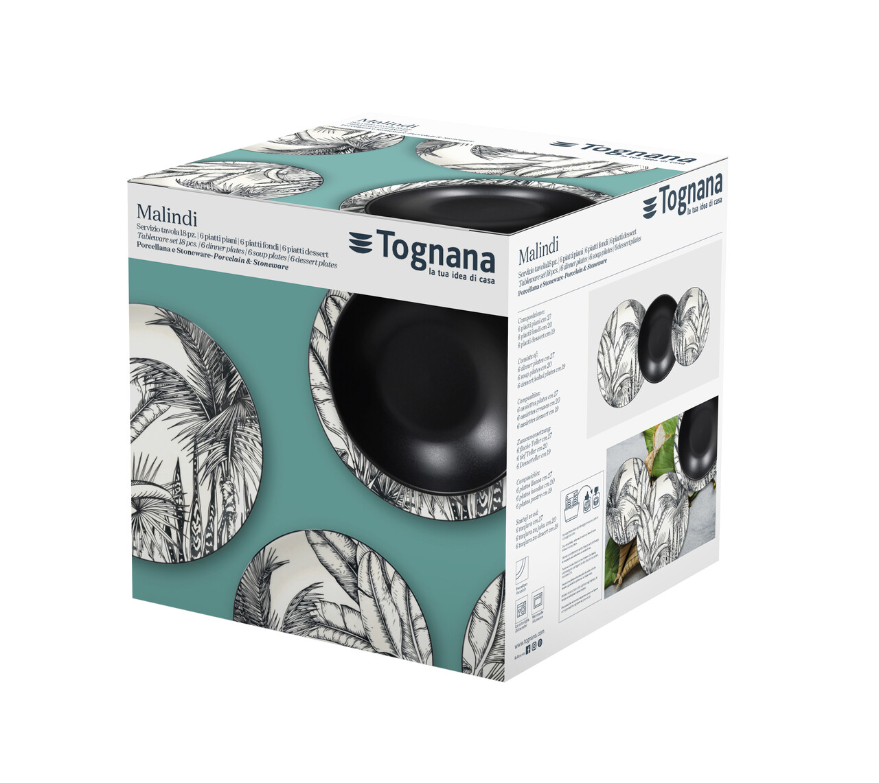 Serviciu de masa 18 piese Madison Malindi, Tognana, portelan, alb/negru