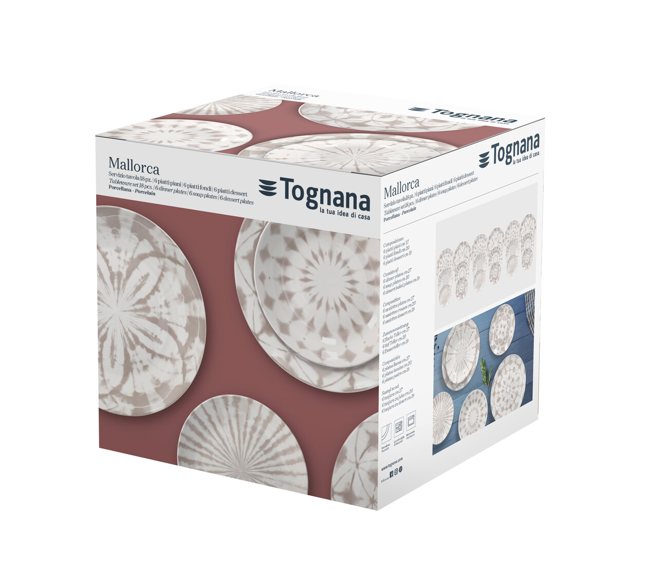 Serviciu de masa 18 piese Madison Mallorca, Tognana, portelan, alb/bej