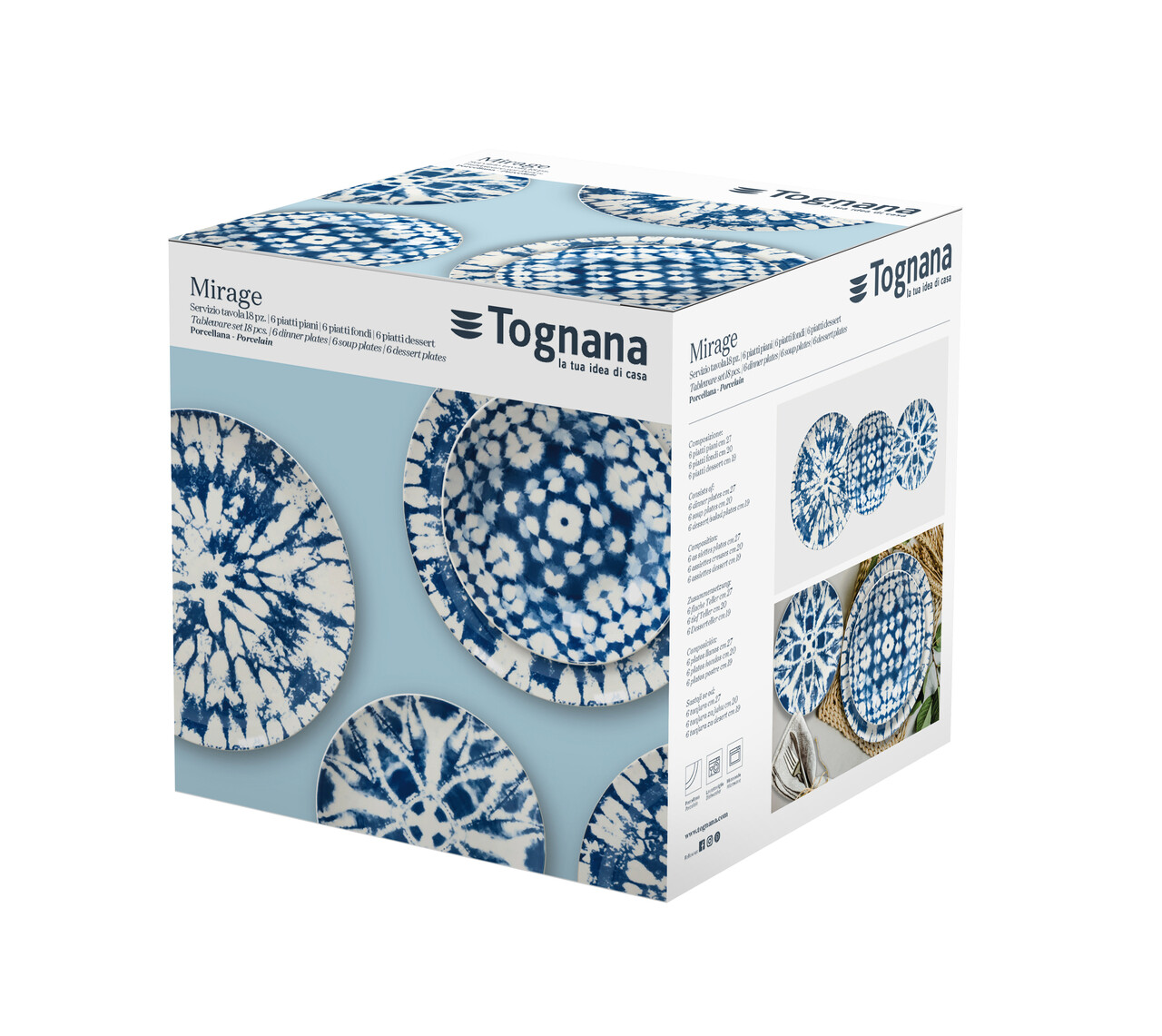 Serviciu de masa 18 piese Madison Mirage, Tognana, portelan, alb/albastru