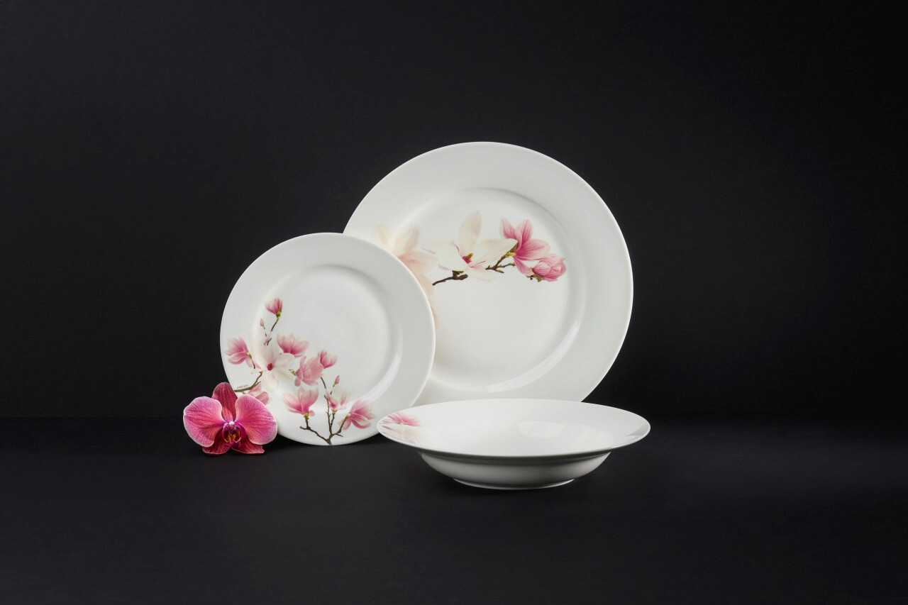 Vasele din colectia Magnolia a brandului Ambition sunt ideale pentru cei care prefera eleganta. Albul luminos al portelanului este completat de decoratiunile florale in nuante calde de roz ale magnoliei. Un cadou minunat pentru cineva drag, sau un mod perfect de a completa propria bucatarie cu un plus de stil. Vasele se pot introduce in cuptorul cu microunde si pot fi curatate in masina de spalat vase.