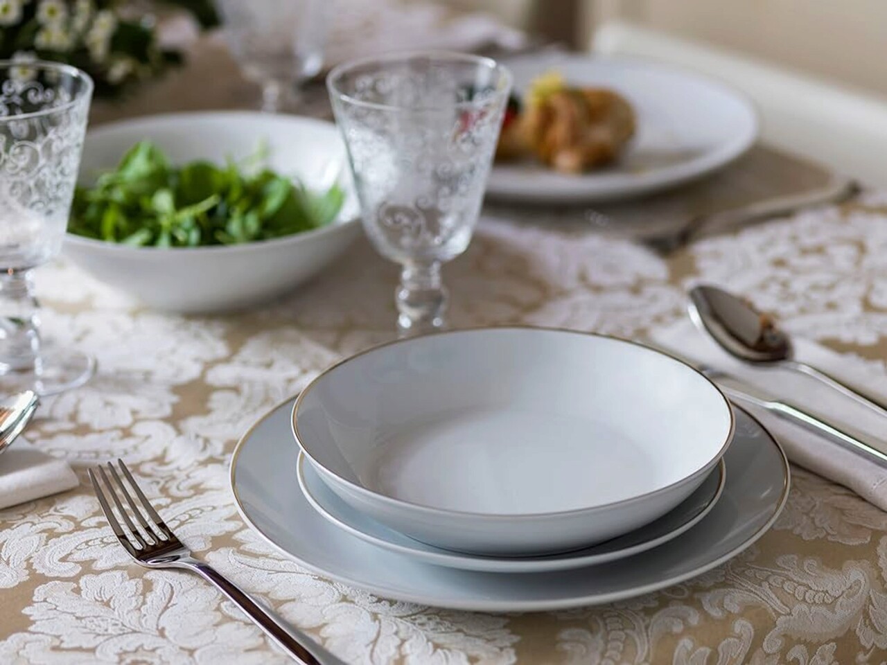 Serviciu de masa 18 piese Metropolis Fascetta, Tognana Porcellane, portelan, alb/auriu