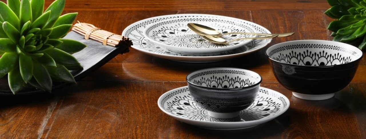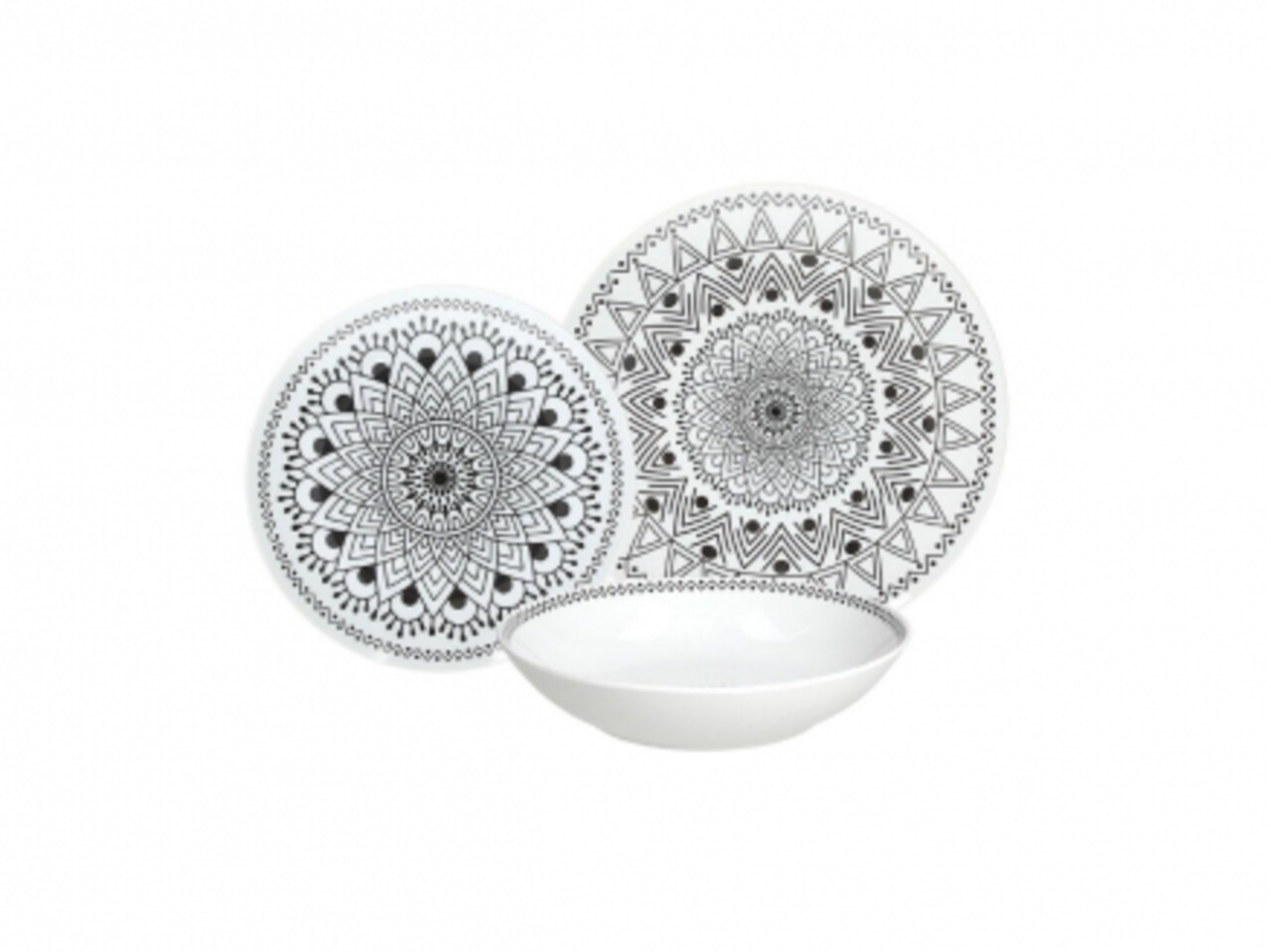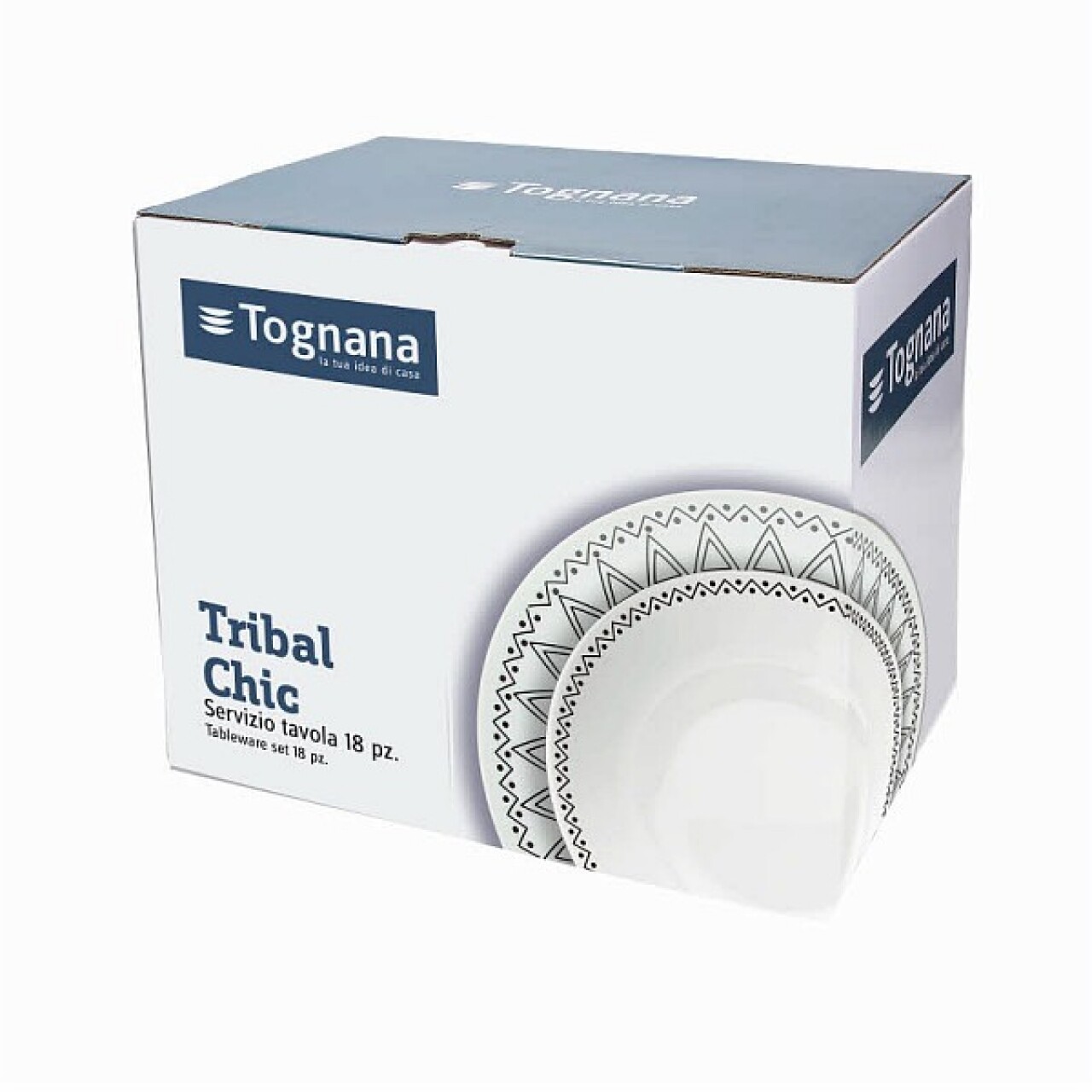 Serviciu de masa 18 piese Metropolis Tribal Chic, Tognana, portelan, alb/negru