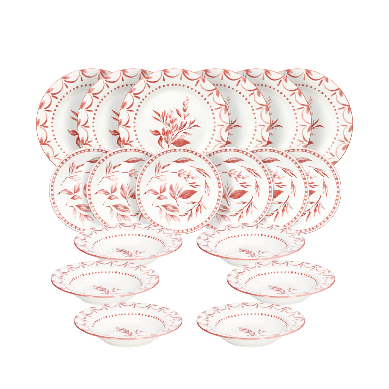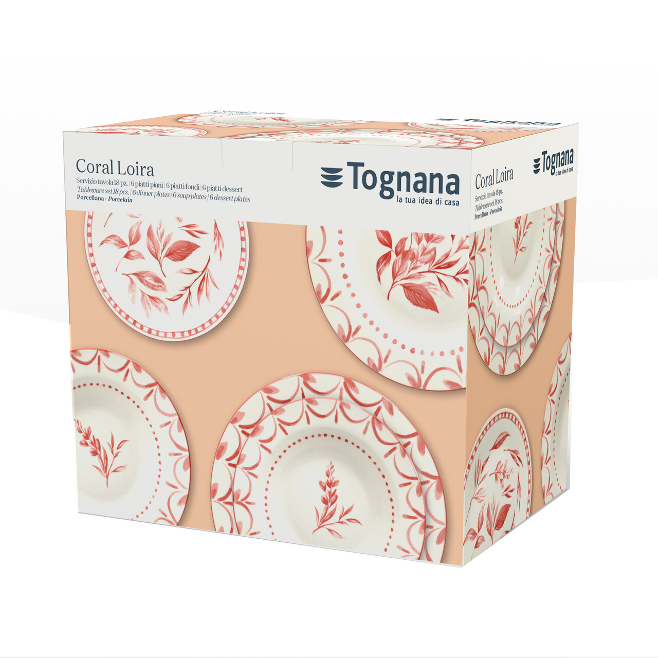 Serviciu de masa 18 piese Olimpia Coral Loire, Tognana, portelan, alb/rosu