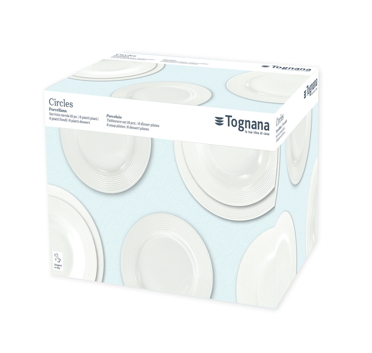 Serviciu de masa 18 piese Polis Circles, Tognana Porcellane, portelan, alb