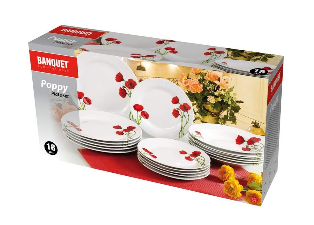 Serviciu de masa 18 piese Red Poppy, Banquet, portelan, alb