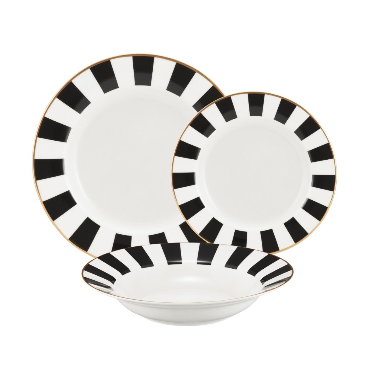 Serviciu de masa 18 piese, Ribs, Ambition, portelan, alb/negru