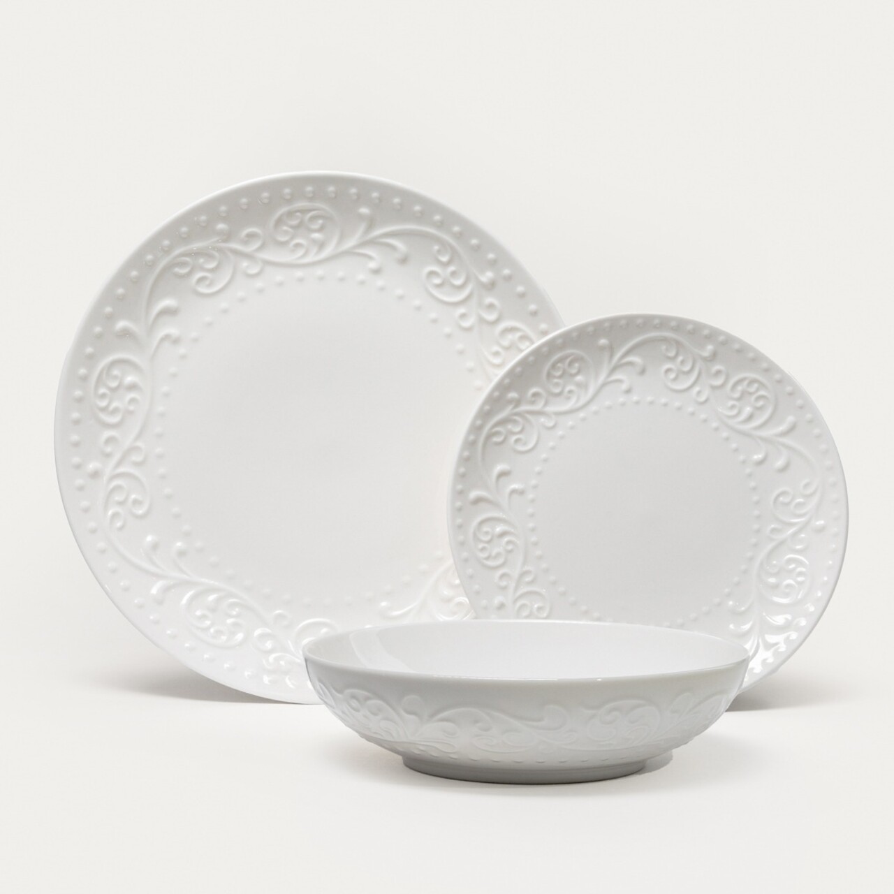 Serviciu de masa, 18 piese Sylia, Homla, portelan, alb