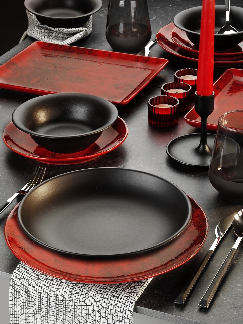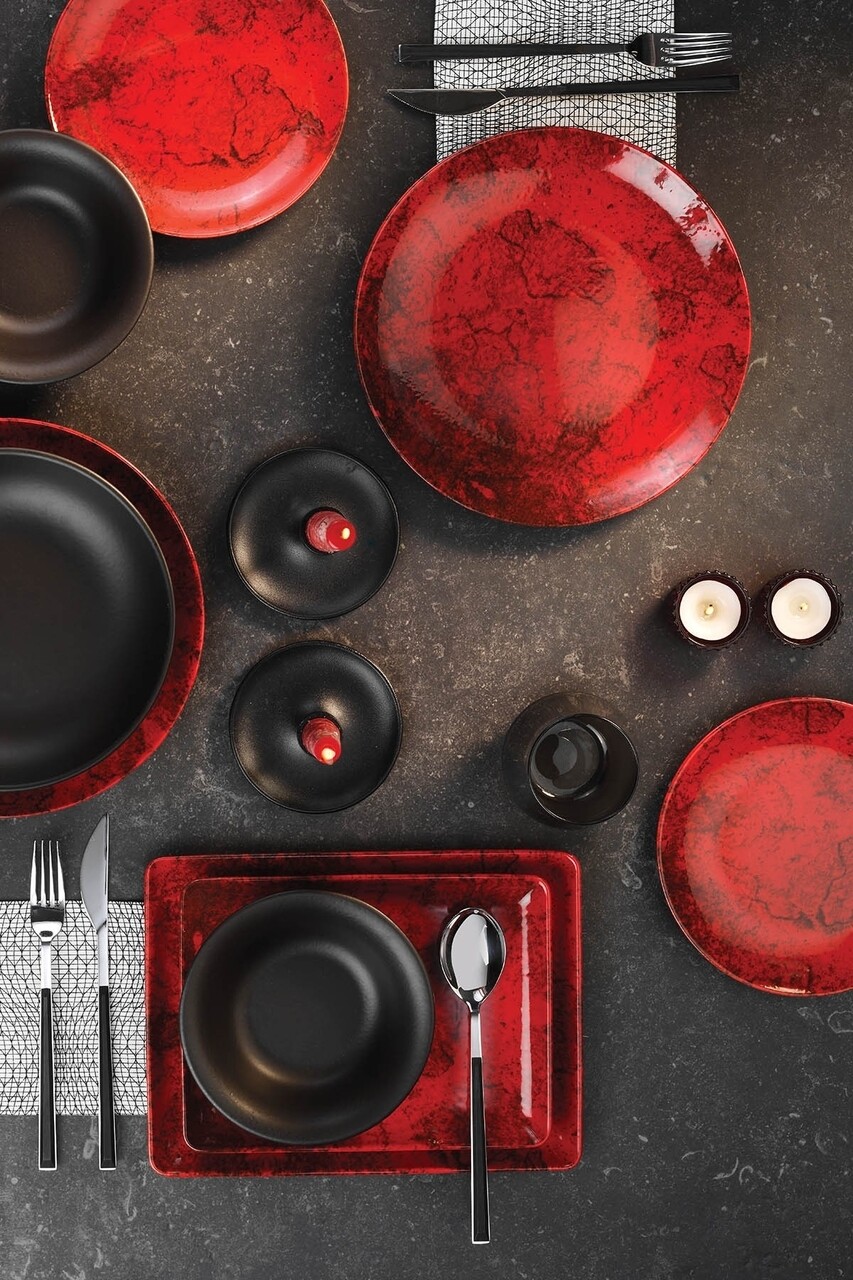 Serviciu de masa, 26 piese, Kutahya Porselen, NNTS26YS892221, portelan, negru/rosu