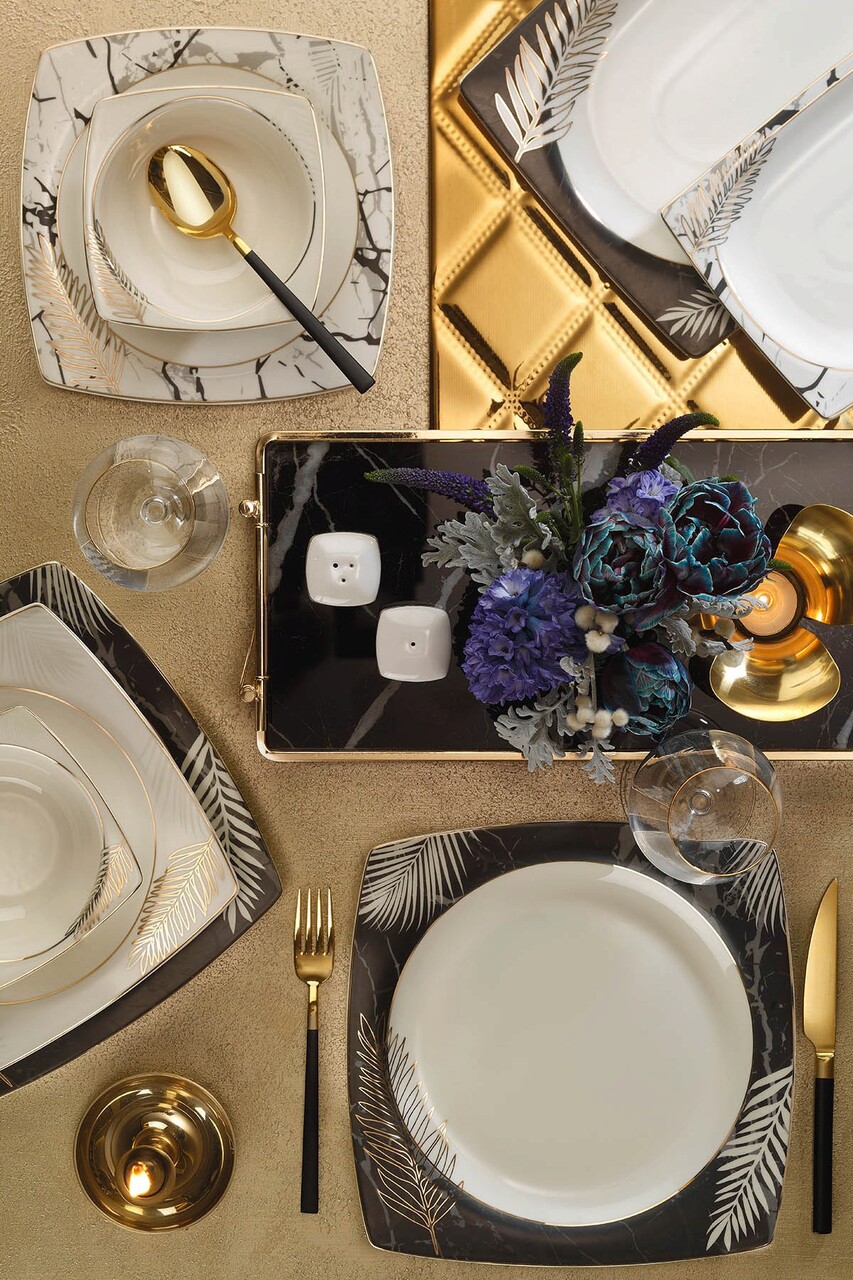 Serviciu de masa 53 piese INBNMR53YT43011444, Kutahya Porselen, portelan, alb/auriu