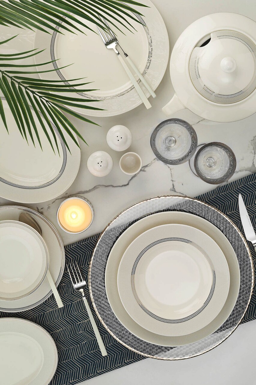 Serviciu de masa 62 piese BNKL62YT43012054, Kutahya Porselen, portelan, alb/argintiu