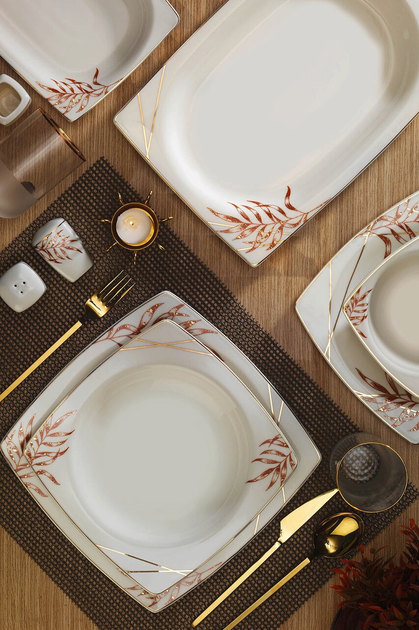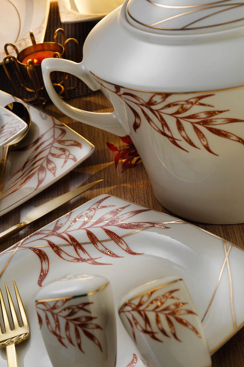 Serviciu de masa 62 piese BNMR62YT430122622, Kutahya Porselen, portelan, alb/bronz