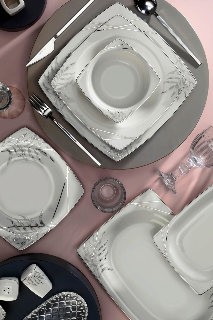 Serviciu de masa 62 piese BNMR62YT430122626, Kutahya Porselen, portelan, alb/argintiu