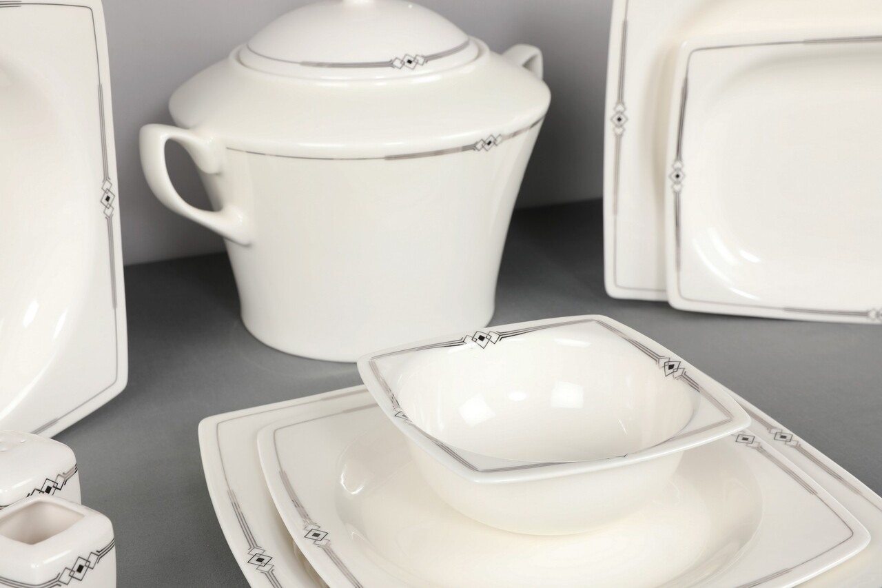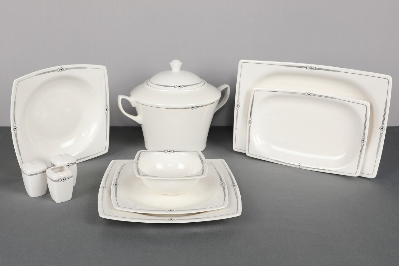 Serviciu de masa, 62 piese, Kutahya Porselen, BNMR62YT1060520, portelan, alb/negru