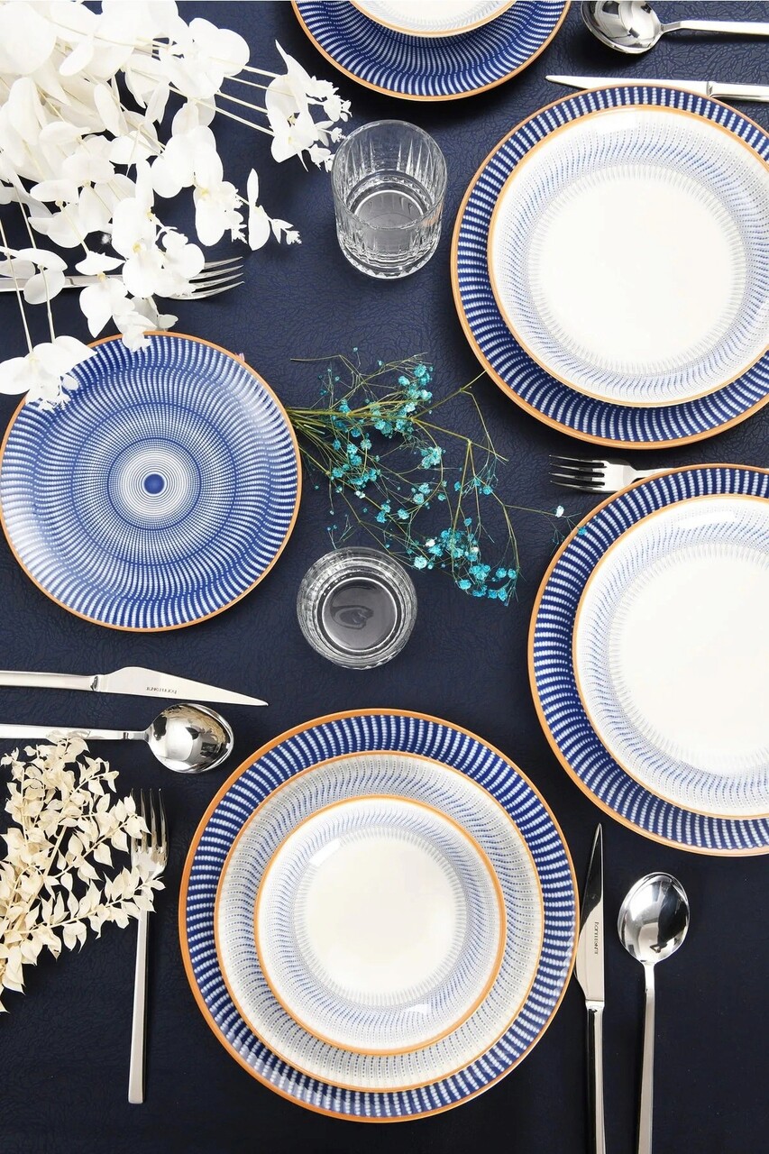 Serviciu de masa, Beros, 973BRS3145, Portelan , Farfurie intinsa 25 cm, Alb/Albastru