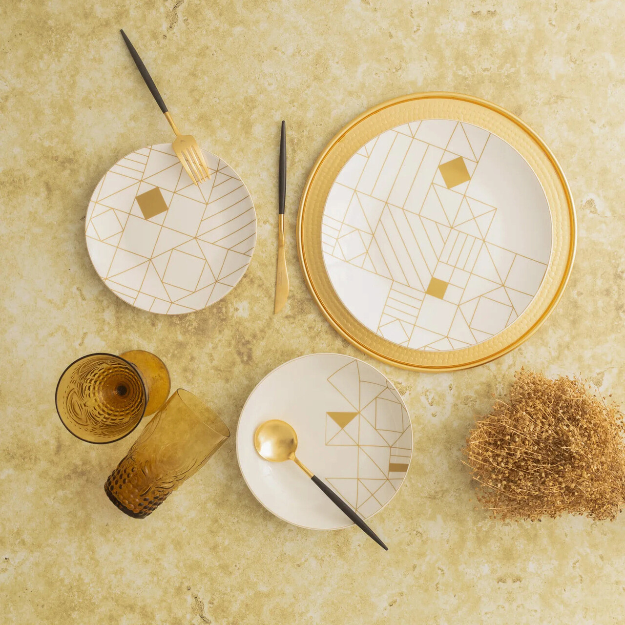 Serviciu de masa, Hermia, 216KRC1160, Nu este potrivit pentru cuptorul cu microunde / Nu este potrivit pentru mașina de spălat vase, Alb/Auriu