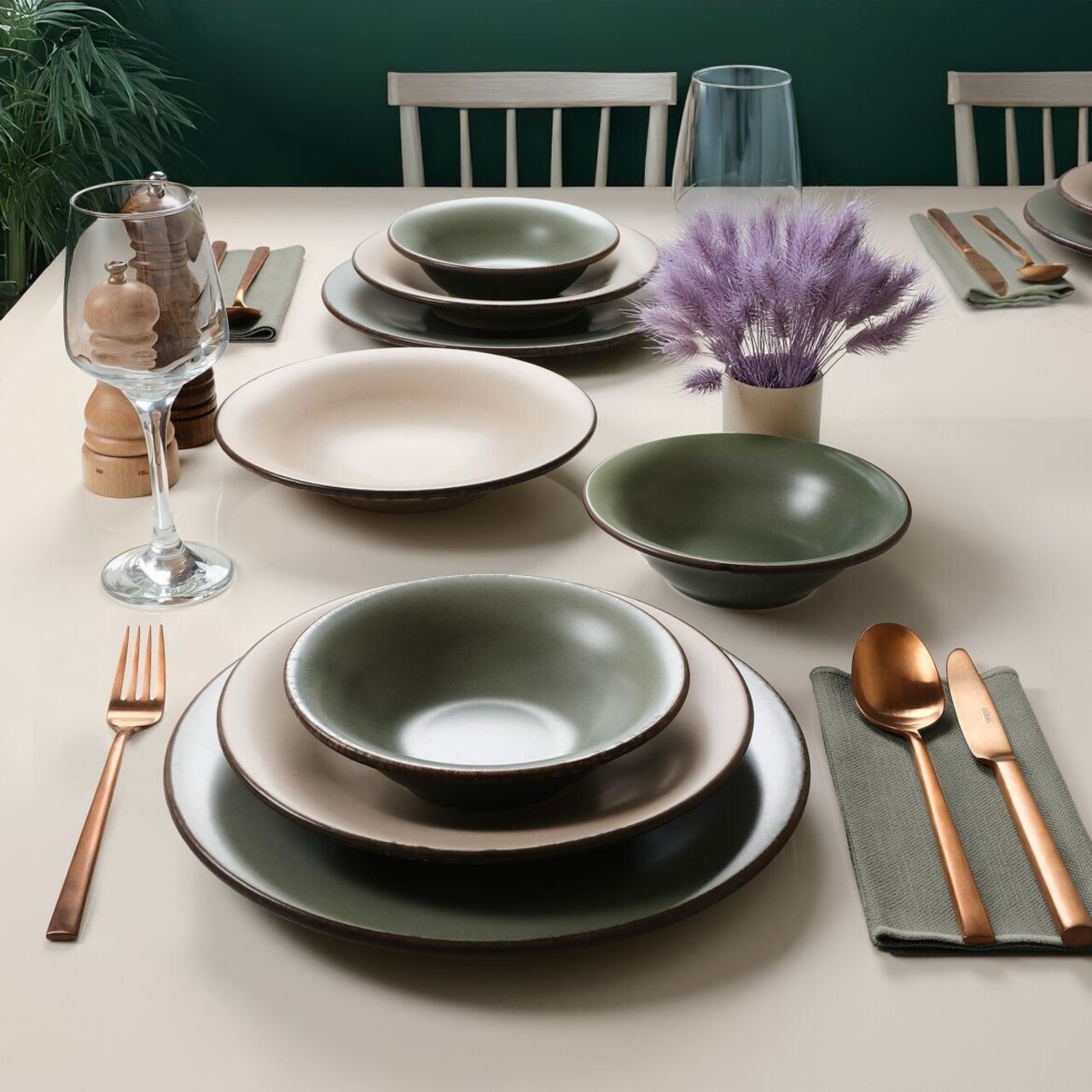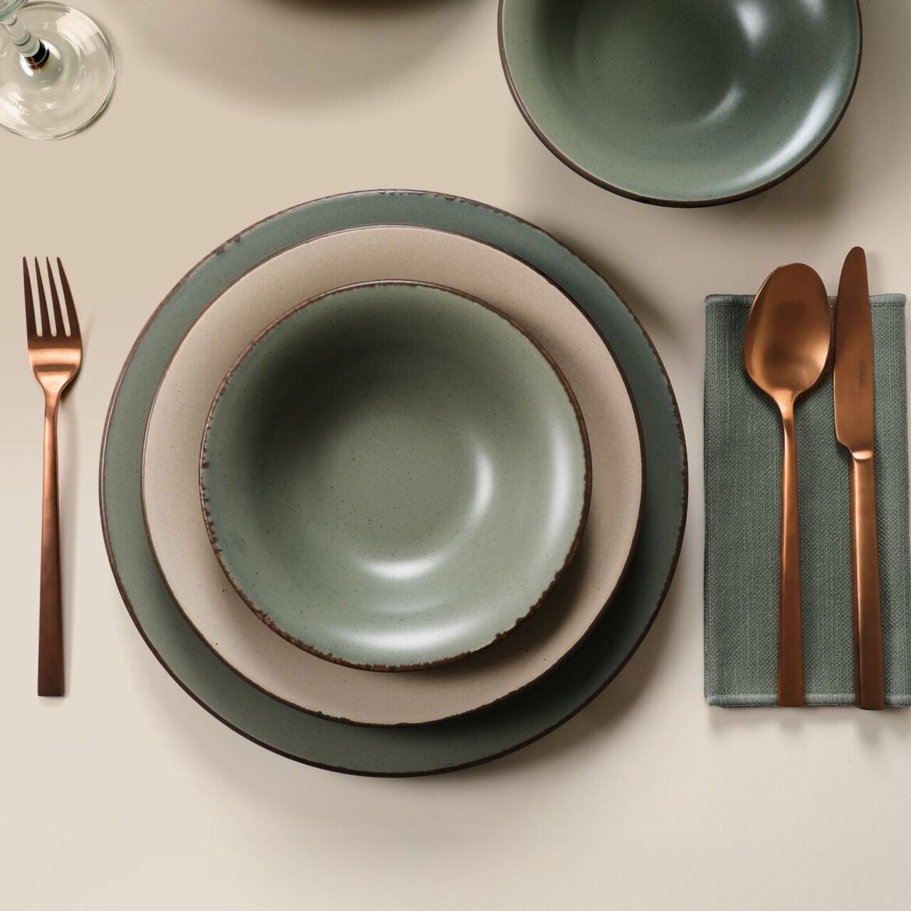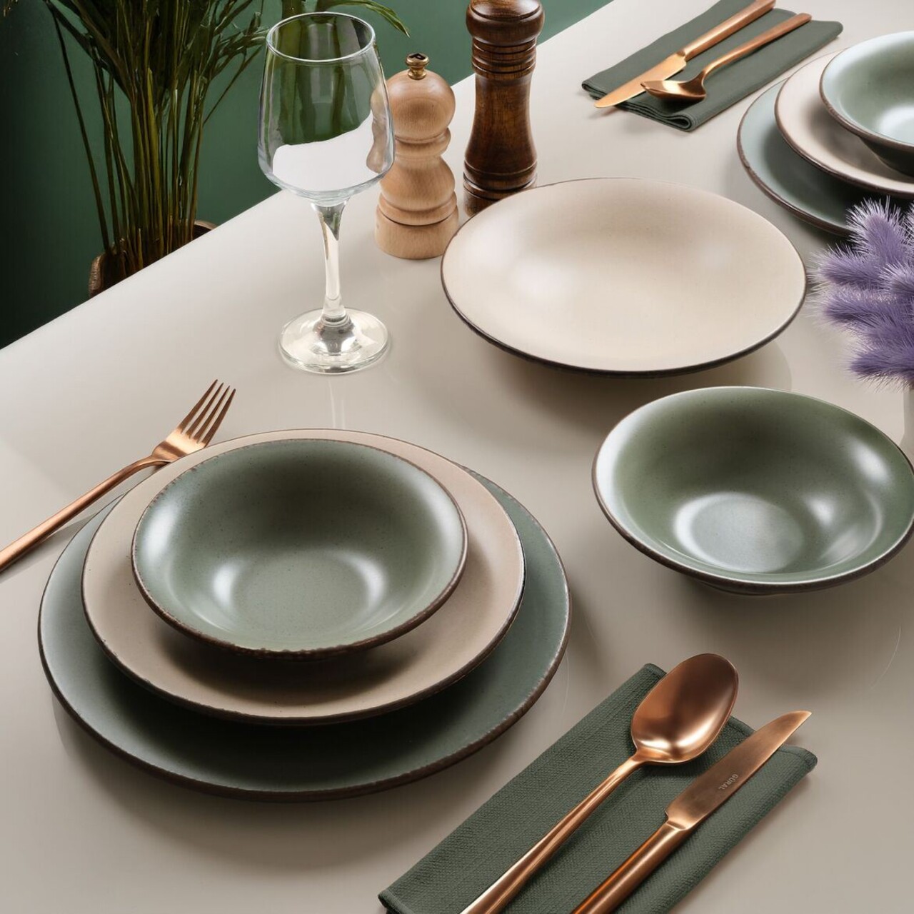 Serviciu de masa, Hermia, 387GRP1419, Farfurie: 20 x 20 x 4 cm (6 bucăți), Bej / Nisipiu