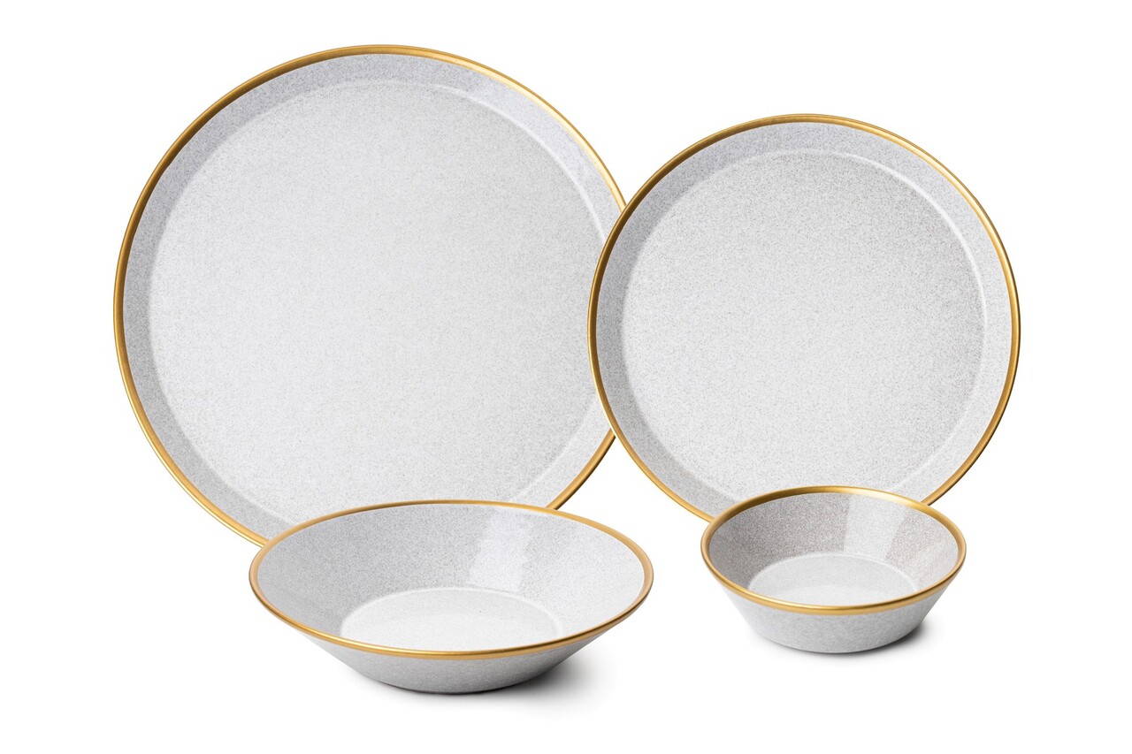 Serviciu de masa, Hermia, 719KTP9737, Farfurie: 20 x 20 x 3 cm (4 bucăți), Gri / Auriu