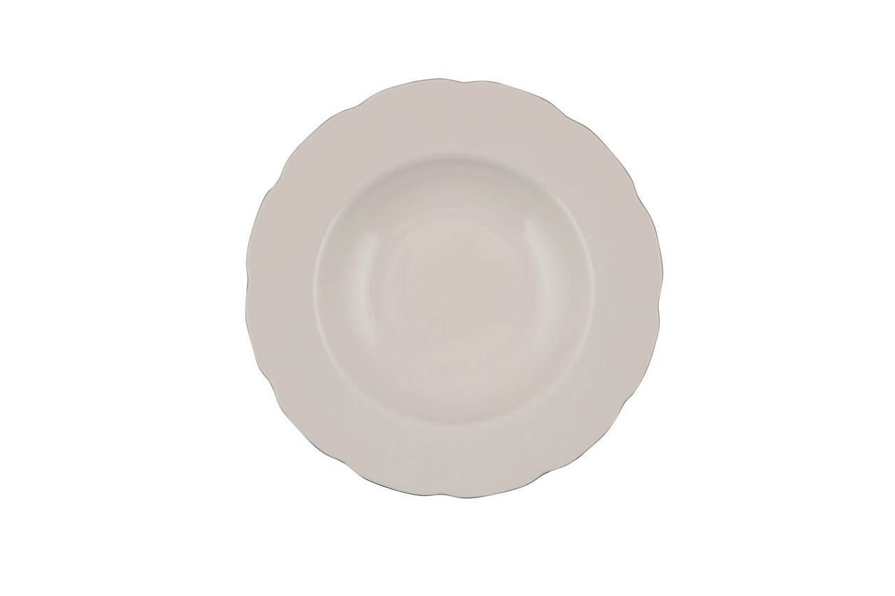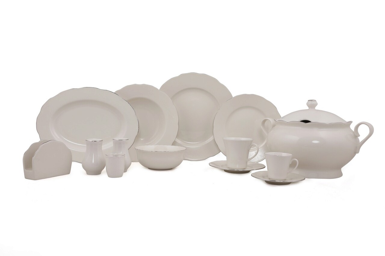 Serviciu de masa, Kütahya Porselen, 710KTP2875, Portelan , Bol pentru supă: 25 x 25 x 10 cm (1 bucată), Alb / Argintiu