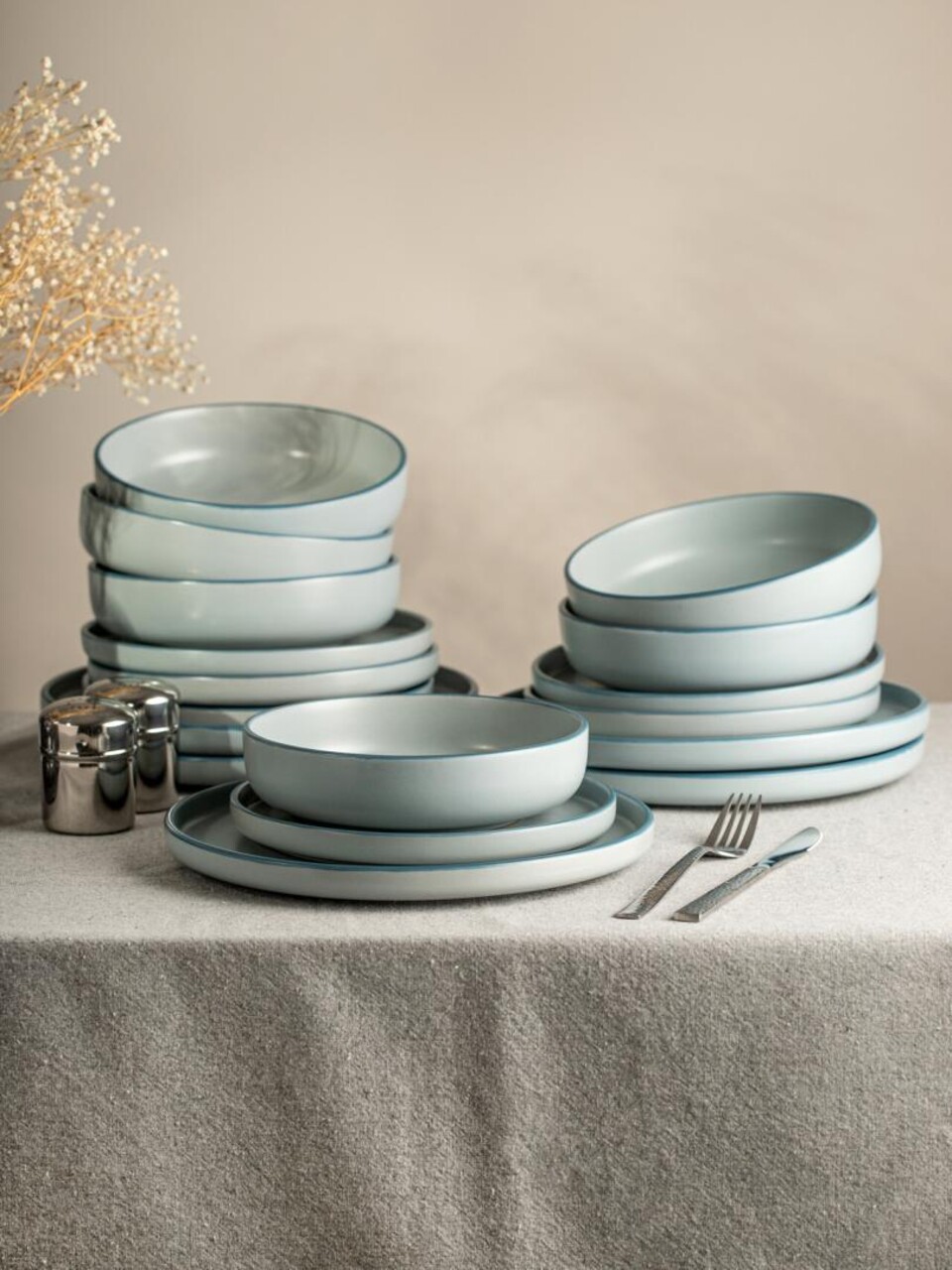 Serviciu de masa Mavi, Homla, 18 piese, ceramica, albastru