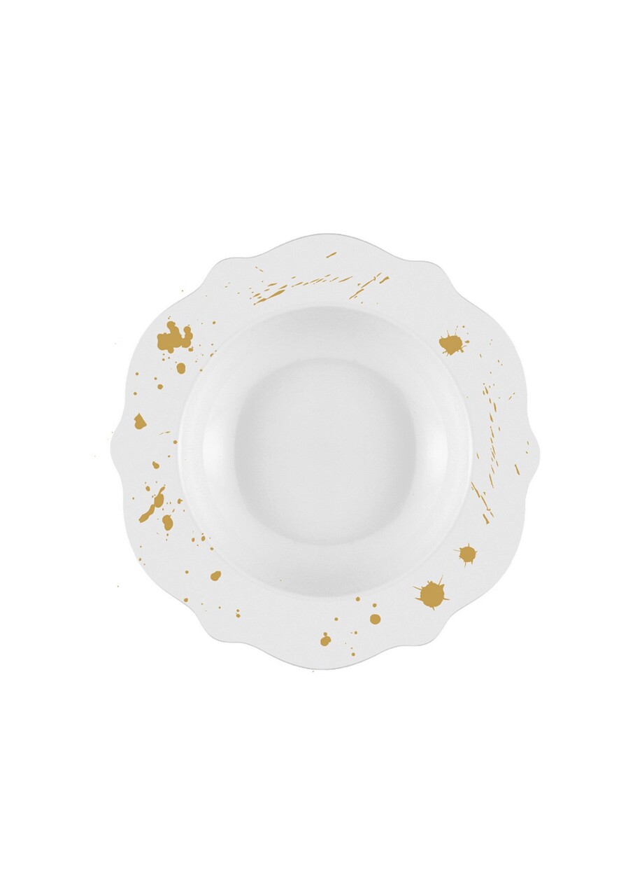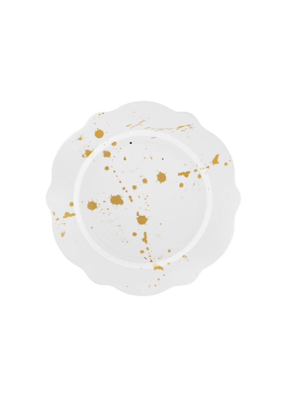 Serviciu de masa, Mia - Kitchenware, 280TMA1709, Portelan , Placă de serviciu: 27 x 27 x 2 cm (6 bucăți), Alb/Auriu