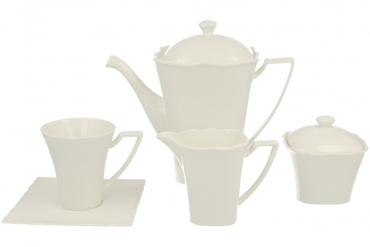 Simplu, dar elegant, setul pentru cafea Ritz este perfect pentru momenttele in care ai musafiri si doresti sa ii servesti cu o cafea sau un ceai. Serviciul cuprinde, pe langa cele sase cescute cu farfuriutele aferente, si o letiera, zaharnita si ceainic. Ai tot ce iti trebuie pentru a fi o gazda perfecta.
