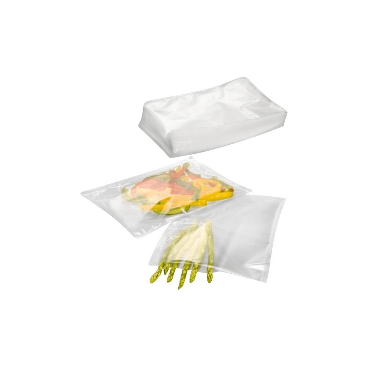 Setul este format din 100 de pungi cu grosimea neteda/texturata de 75/95 μm, care prin vidare si sigilare, pastreaza ingredientele proaspete timp indelungat.
