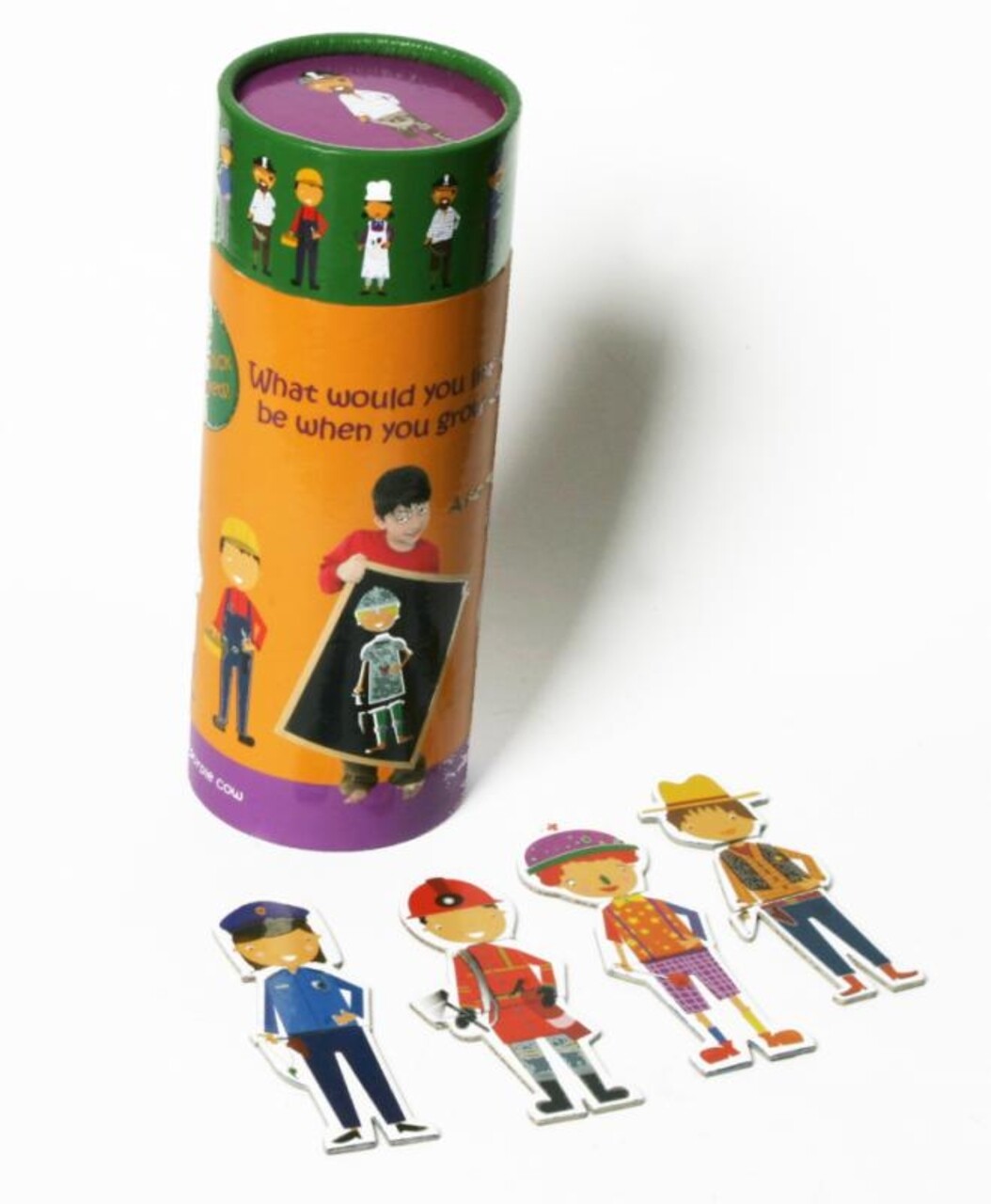 Acest puzzle magnetic contine 11 profesii. Fiecare profesie este reprezentata de o figurina specifica profesiei respective, iar fiecare figurina este alcatuita din trei parti. Descoperiti cele 3 piese care se potrivesc pentru fiecare figura si profesie. Setul magnetic poate fi folosit pe orice suprafata magnetica.