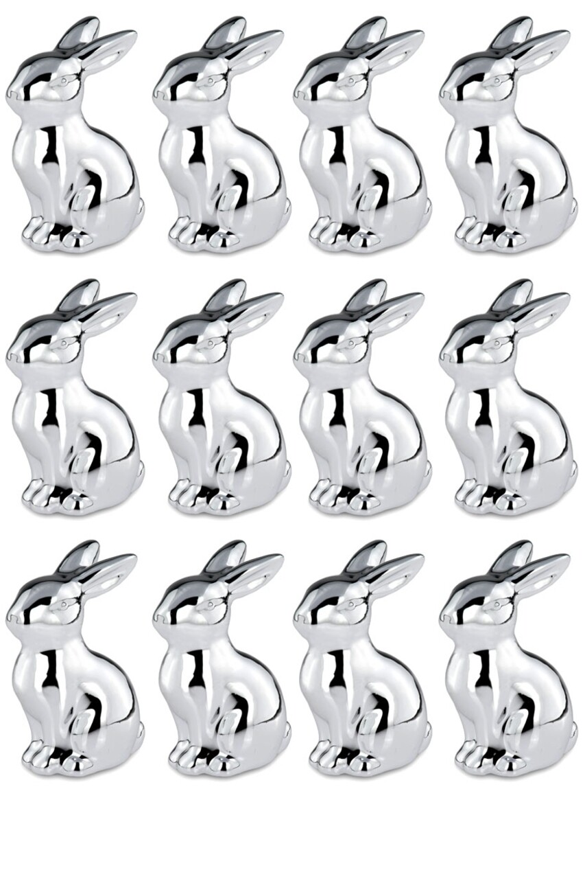 Set 12 decoratiuni Small Sitting Rabbit, Hermann Bauer, portelan, argintiu