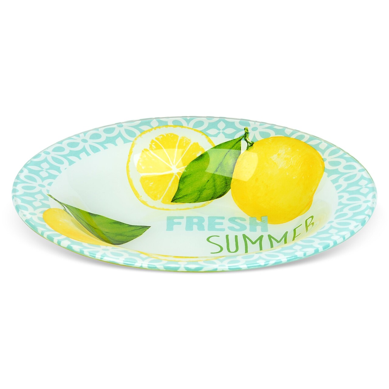 Set 12 farfurii, Fresh Summer, 20 cm - 25 cm, sticla, transparent/multicolor