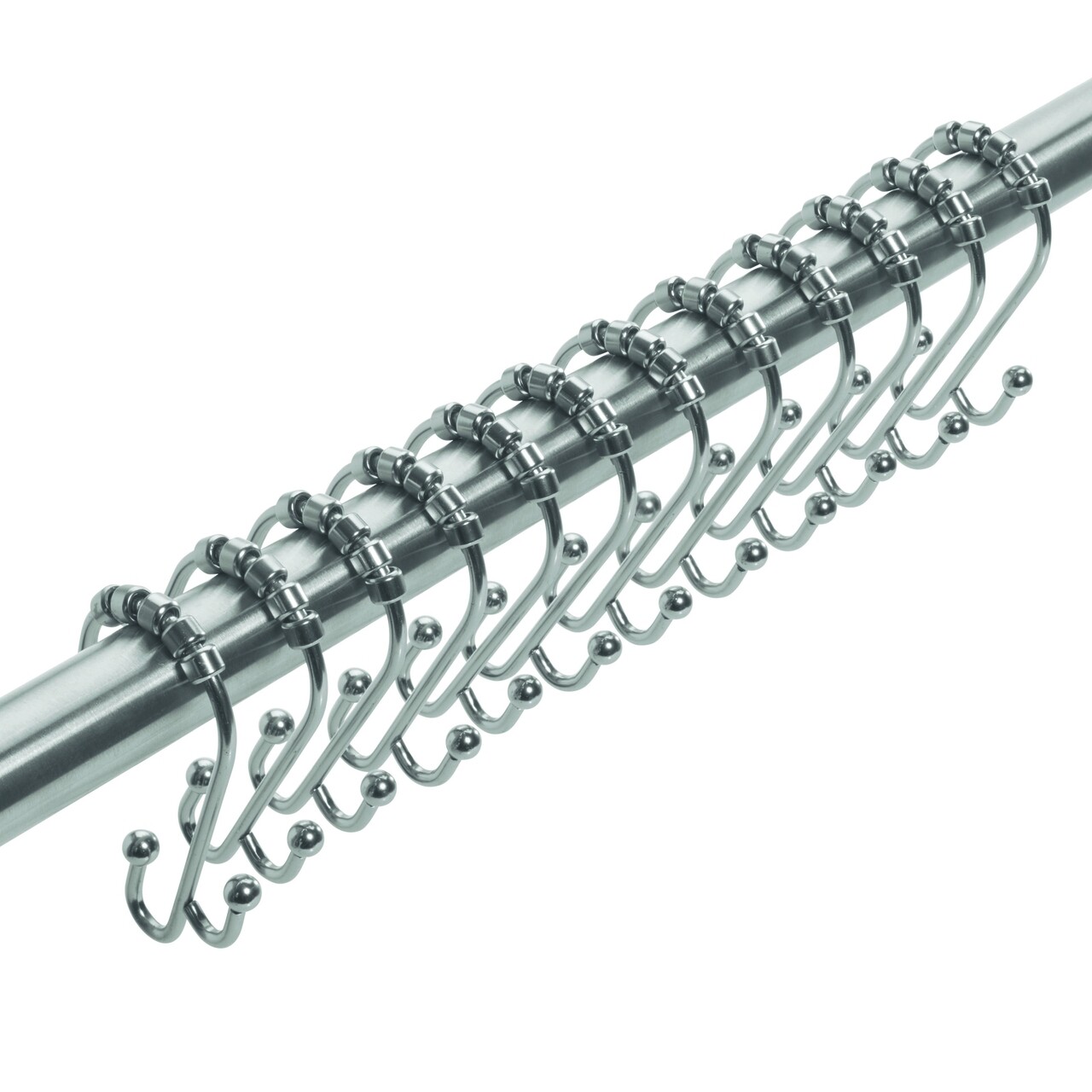 Set 12 inele duble pentru perdea de dus Corinne, iDesign, 4.5x8 cm, otel, nichel
