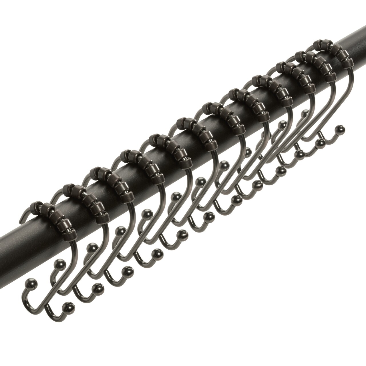 Set 12 inele duble pentru perdea de dus Corinne, iDesign, 4.5x8 cm, otel, bronz