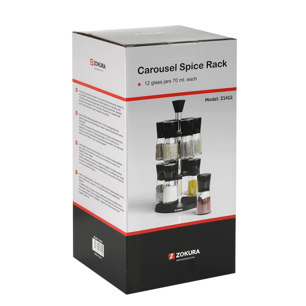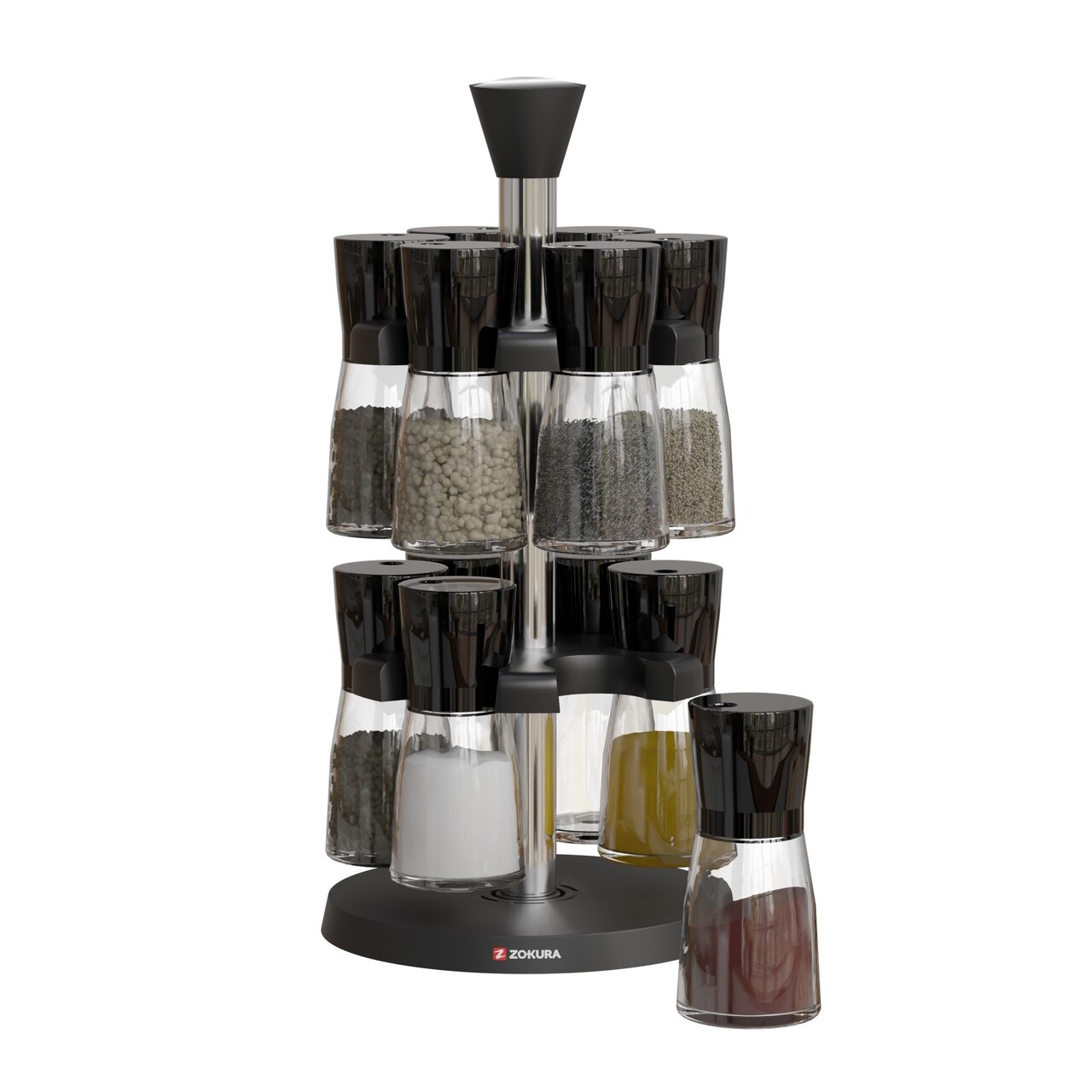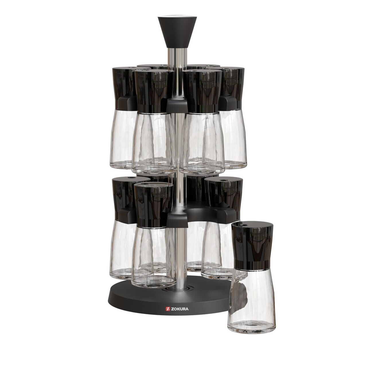 Set 12 recipiente pentru condimente, Fabricate dinSticla, Cu suport rotativ, MarcaZokura.