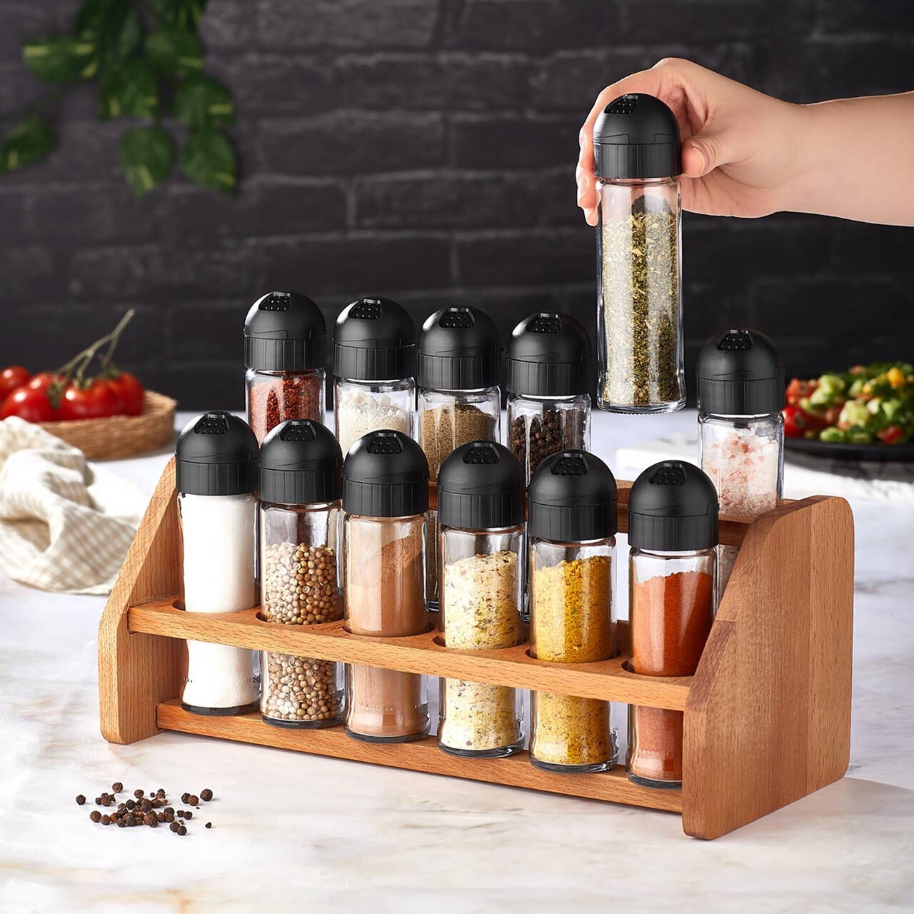 Set 12 recipiente pentru depozitare UPT00917S, Forsberg, sticla/lemn