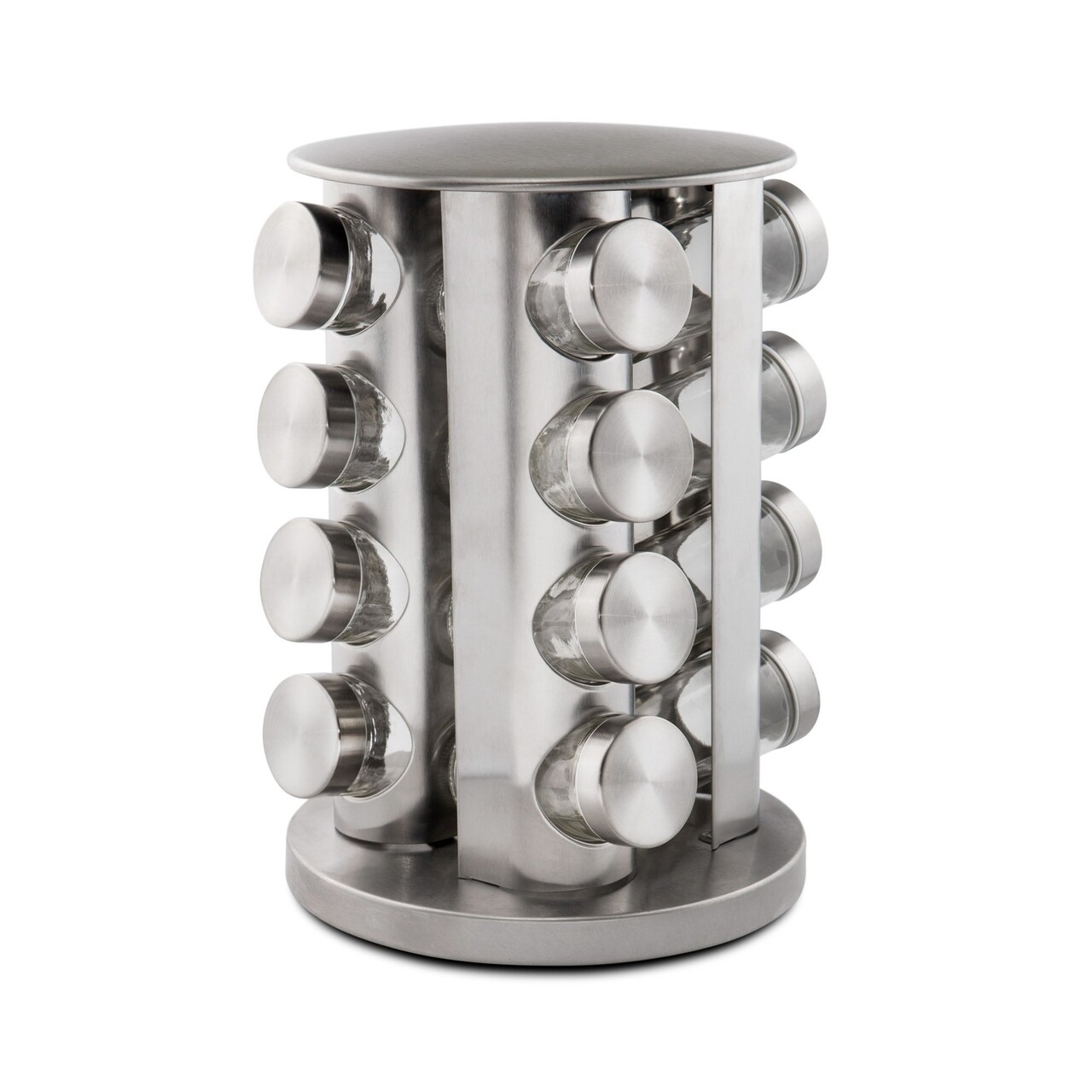 Setul este format dintr-un suport din inox satinat, mobil, care poate fi rotit la 360° si din 16 recipiente din sticla, acoperite de un capac de inox. Astfel, aromele raman intacte in recipientele care se inchid etans si infloresc doar atunci cand le folosesti in mancare. Fiecare recipient in parte are capacitatea de 80 ml si o inaltime de 9 cm.
