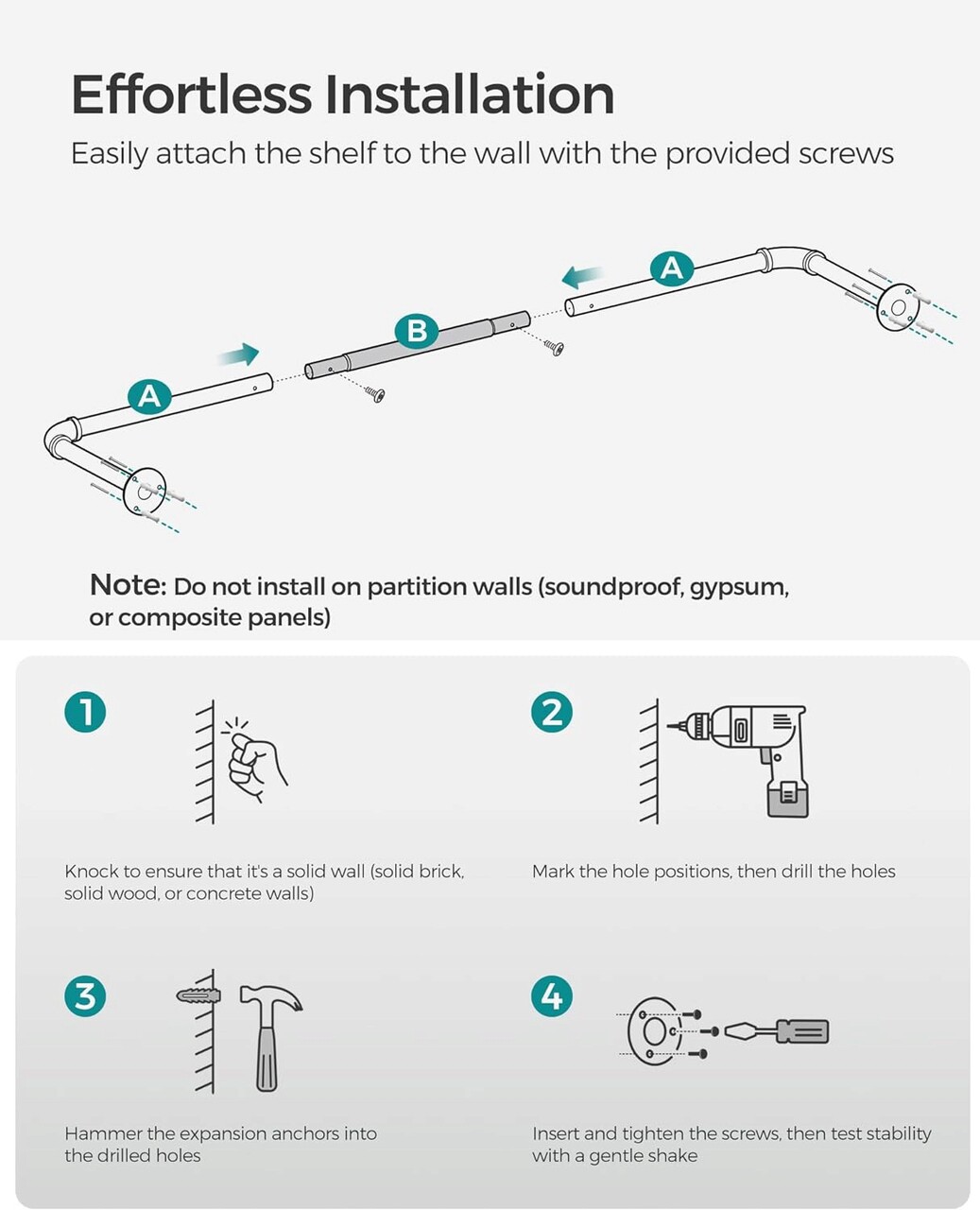 Fiecare sina poate sustine pana la 60 kg atunci cand este montata pe pereti masivi din caramida sau beton si 45 kg pe pereti din lemn.