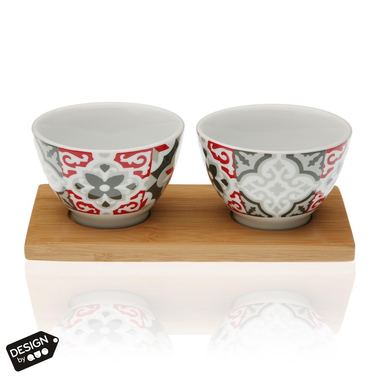 Set 2 boluri cu suport Maroon, Versa, 8.5 x 5 cm, portelan