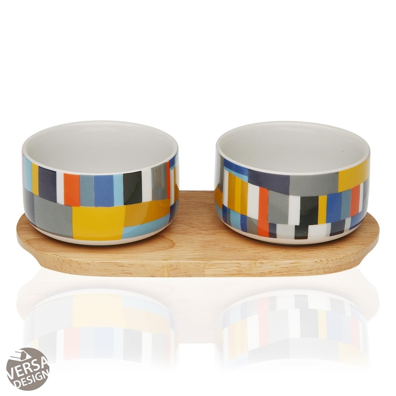 Set 2 boluri pentru aperitiv si suport Etna, Versa, portelan/bambus