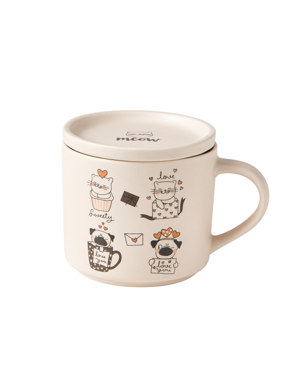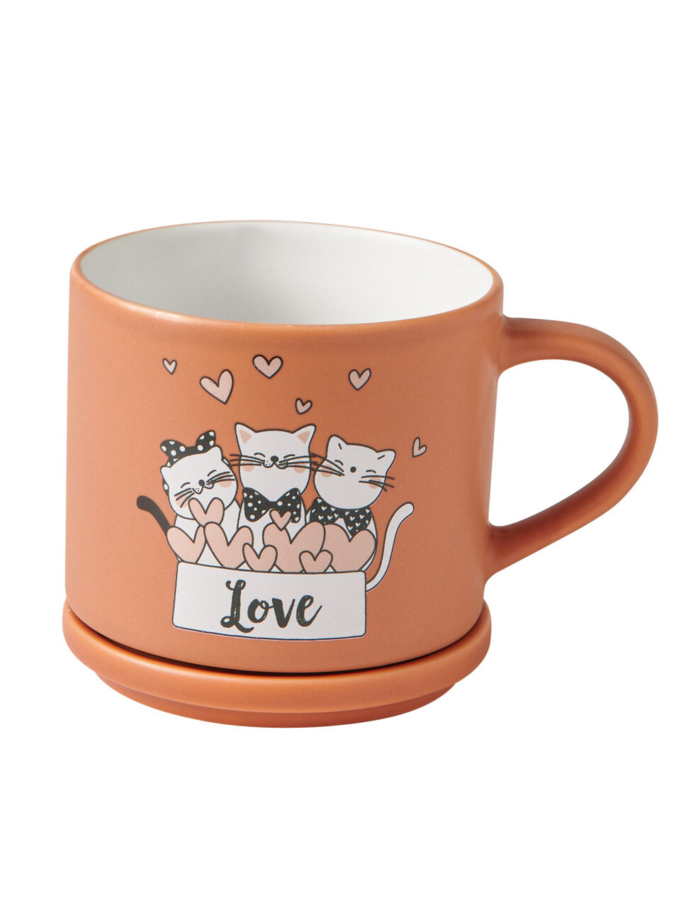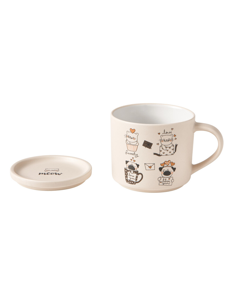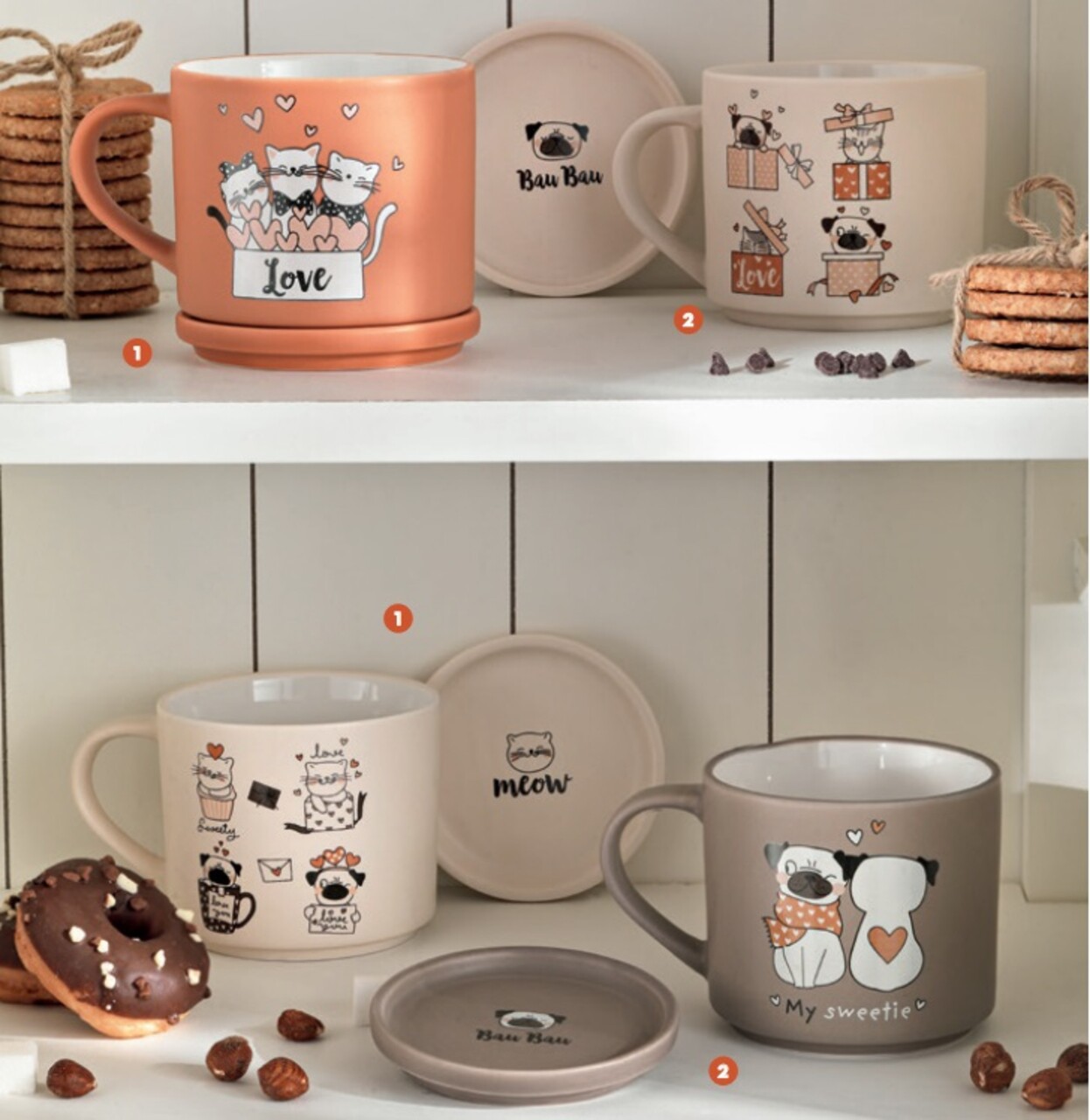 Pentru pauze relaxante si pline de voie buna, Brandani a creat setul de cani cu pisici: vesel, practic si perfect pentru orice moment al zilei. Cele doua cani, in nuante de terracotta si alb, sunt realizate din portelan new bone china si decorate cu pisicute jucause care aduc un strop de buna dispozitie. Dotate cu capac din acelasi material, sunt ideale pentru a pastra caldura bauturilor. Capacul se transforma intr-un suport util pentru cana. O alegere ideala pentru o masa cu personalitate!